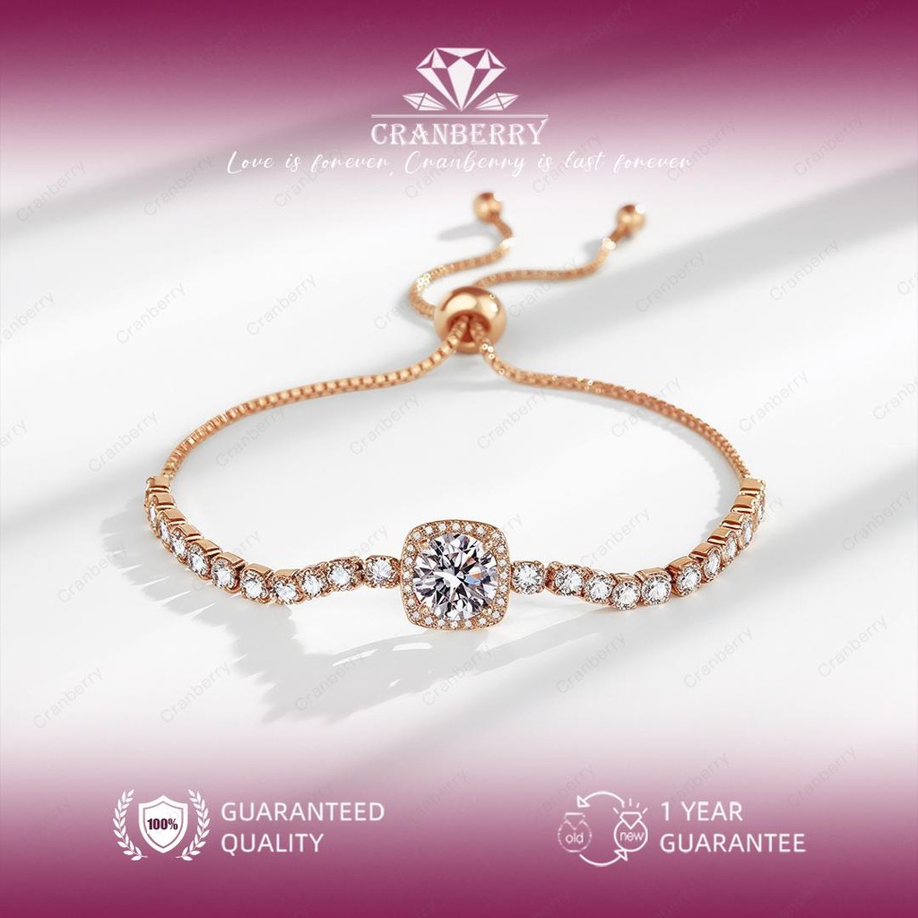 Gelang Wanita Wanita Cranberry Jewelry Premium Lapis Platinum Anti Luntur Anti Berubah Warna Garansi 1 Tahun Resmi Size Adjustable Kualitas Grade Terbaru Aksesoris Perhiasan Gelang Nikah Permata VVS1 Elegan COD B01
