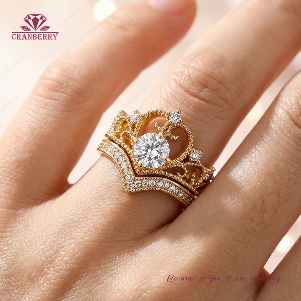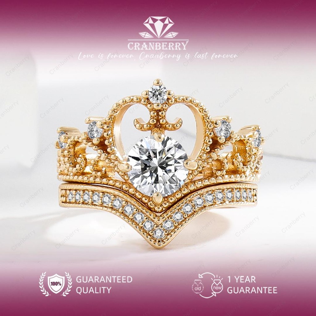 Cincin wanita Cranberry Jewelry Paket Double Ring Elegan Cantik kombo 1 gram karat Carat Yang Elegant wedding Couple Pasangan Cowo Pria High Quality Perhiasan Anti Karat Luntur Berubah Garansi 1 Tahun Permata COD D102