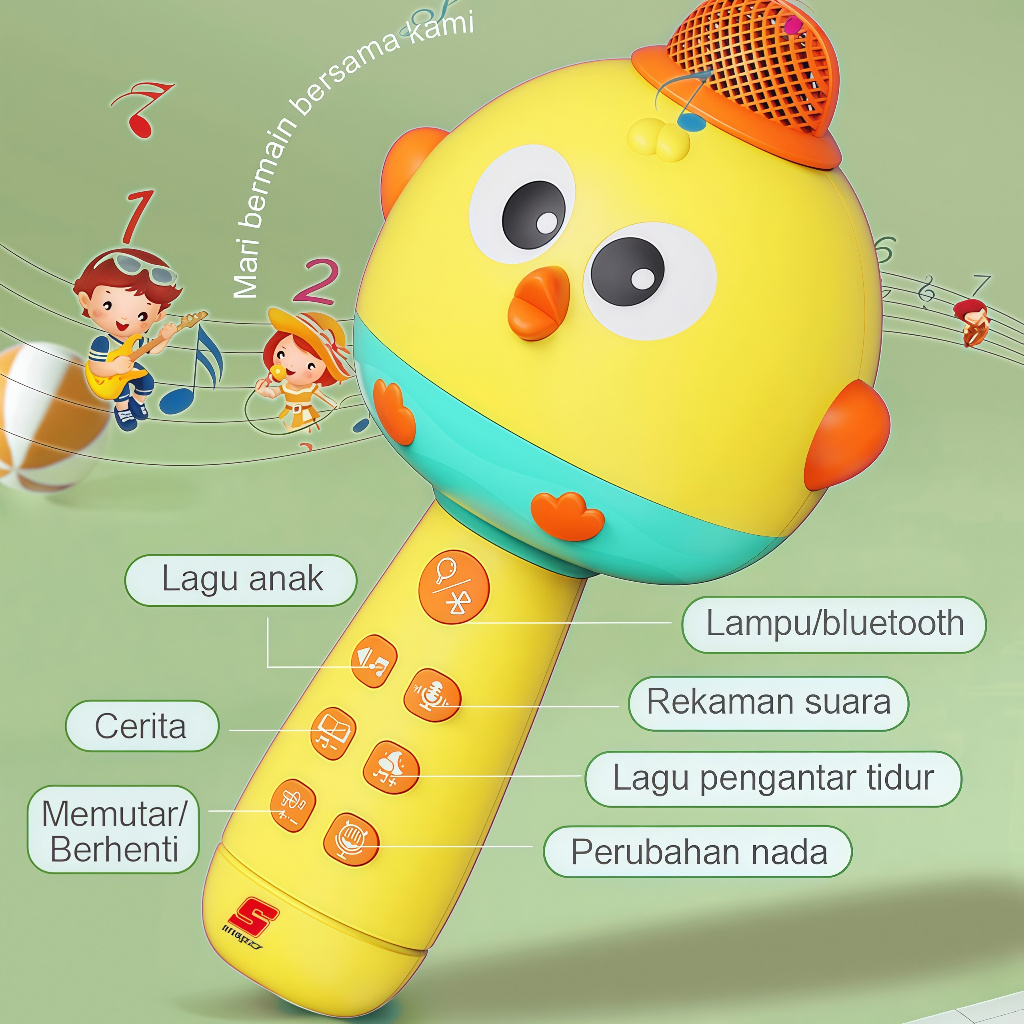 Multifungsi Mikrofon Anak Bluetooth Wireless Speaker Mainan Mikrofon Kartun Nyanyi Anak Perempuan