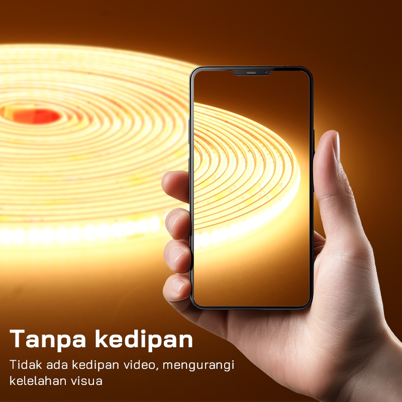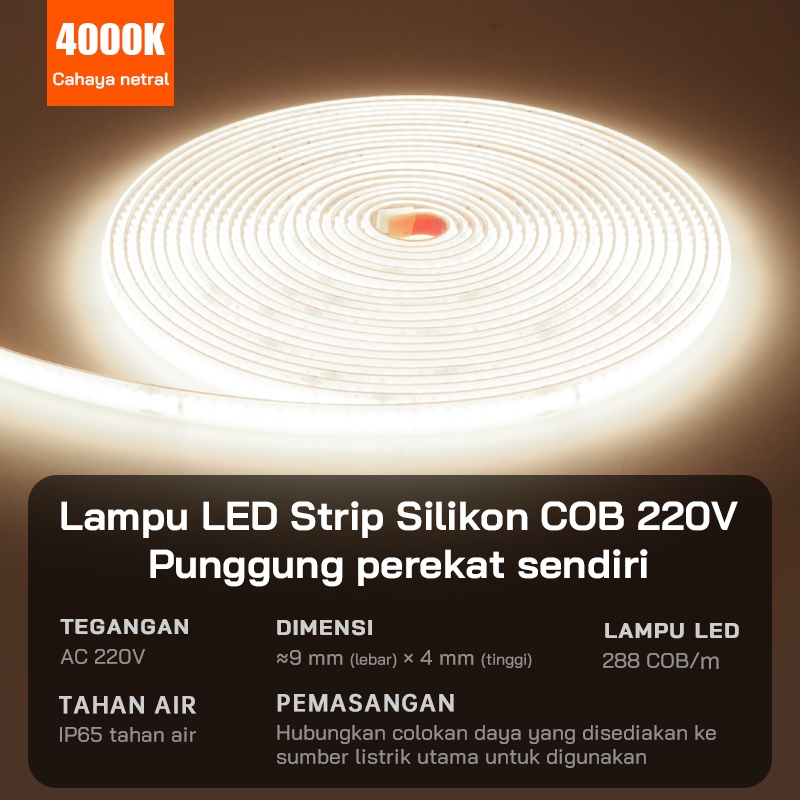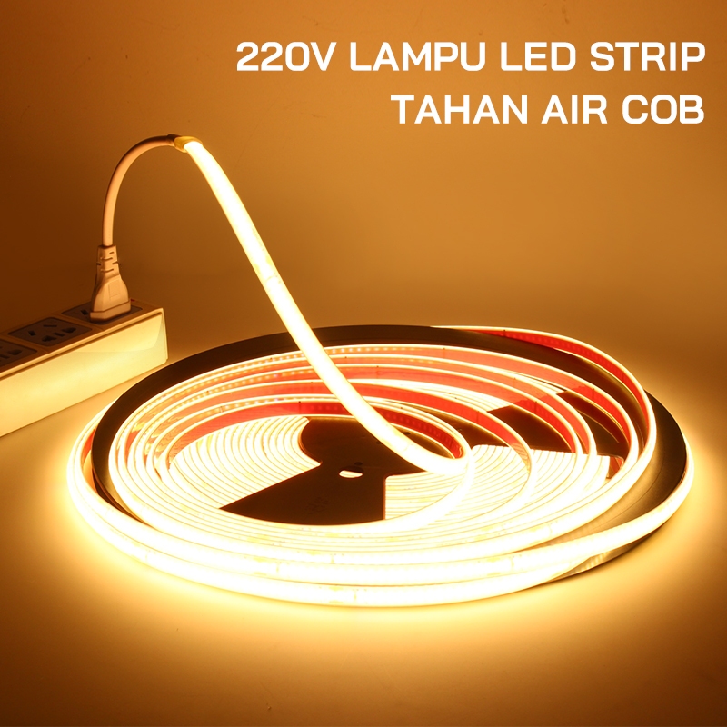 LED Strip COB IP65 Anti Air 220V - Untuk Pencahayaan Taman, Teras, Lampu LED Lengkap Double Tape 3M
