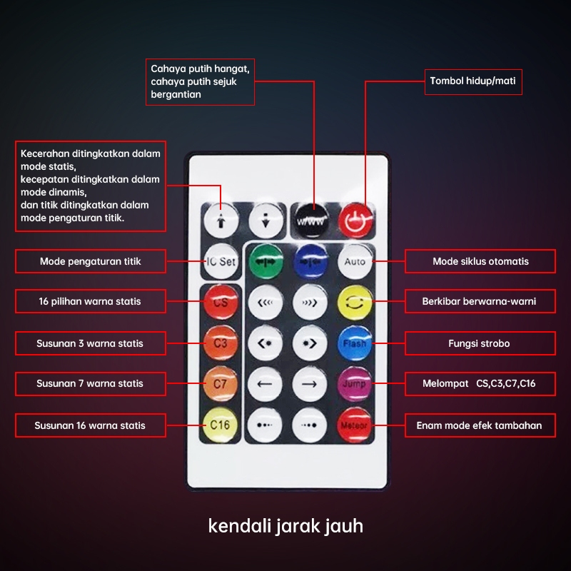 Lampu Strip RGB USB 5V - Untuk Dekorasi Kamar & TV Backlight,Remote Control, Mudah Dipasang 2M/3M/5M