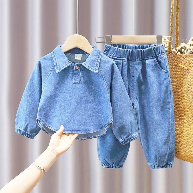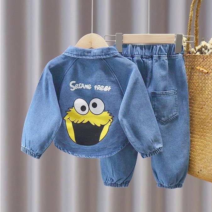 [meandboss] SSP63-Setelan Set Oversize Anak 2in1 Set Baju+Celana JEANS Panjang SESAME