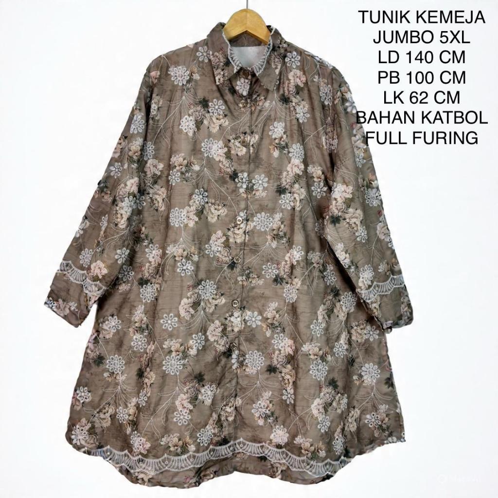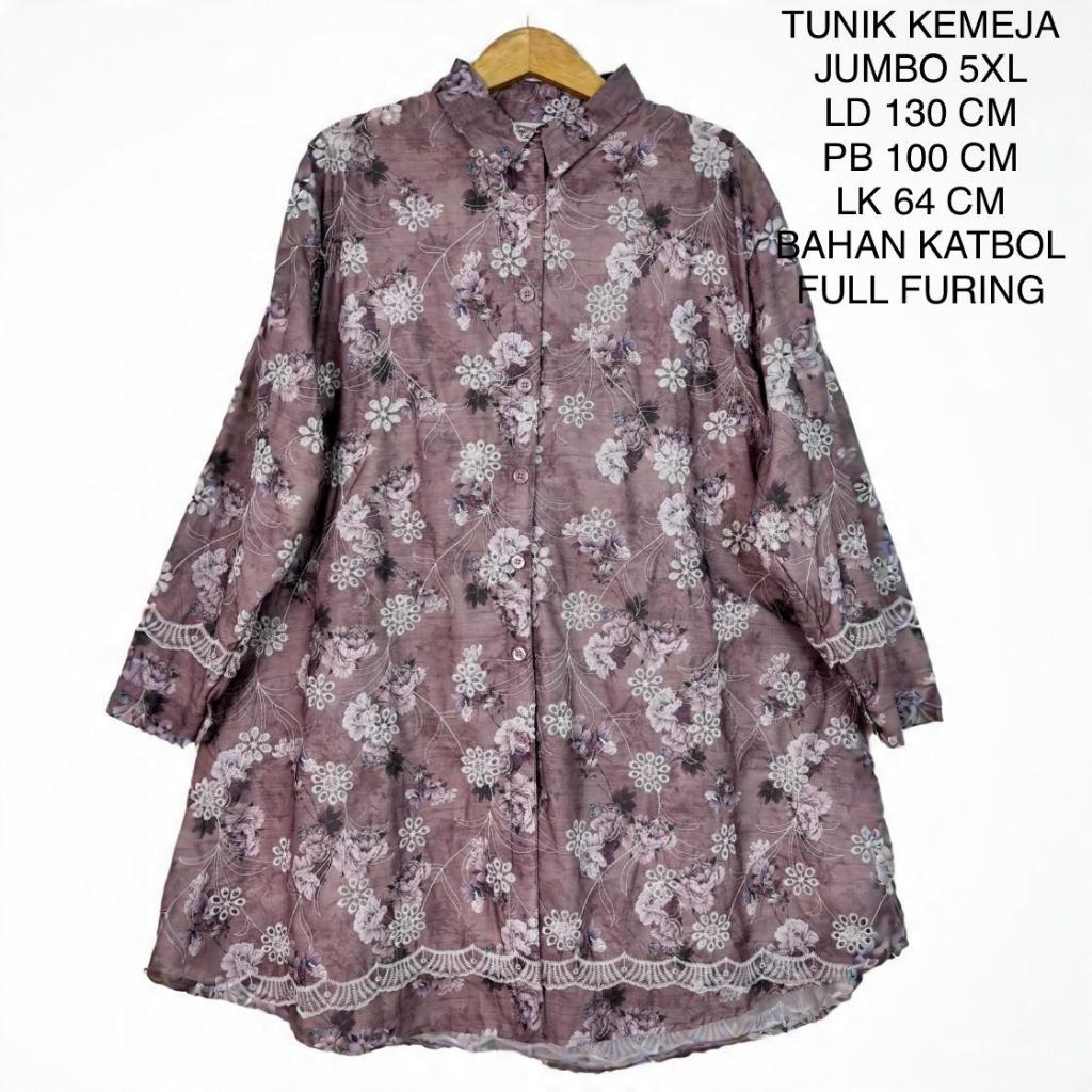 Tunik Kemeja Jumbo Ld 130 Cm Bahan Katun Bordir Katbol Model Kekinian - Luna Tunik