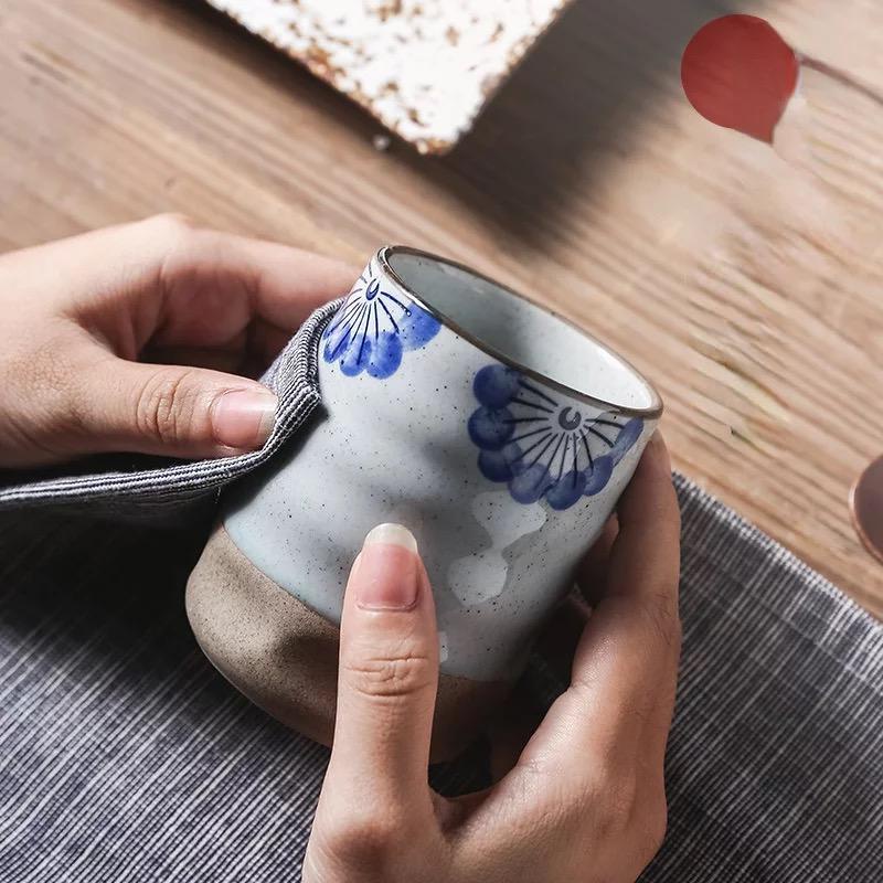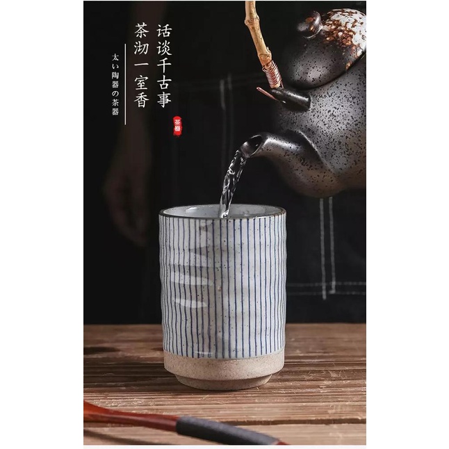 handmade japanese style ceramic coarse pottery coffee tea cup 220ml / cangkir mug gelas teh kopi latte art / retro kung fu master cup / cangkir khas jepang