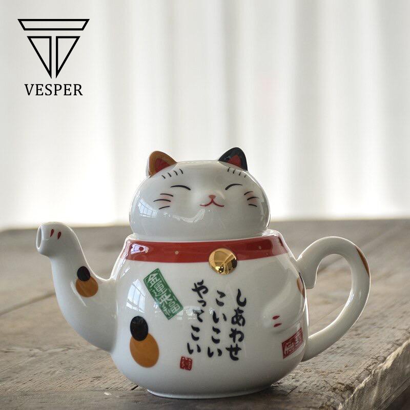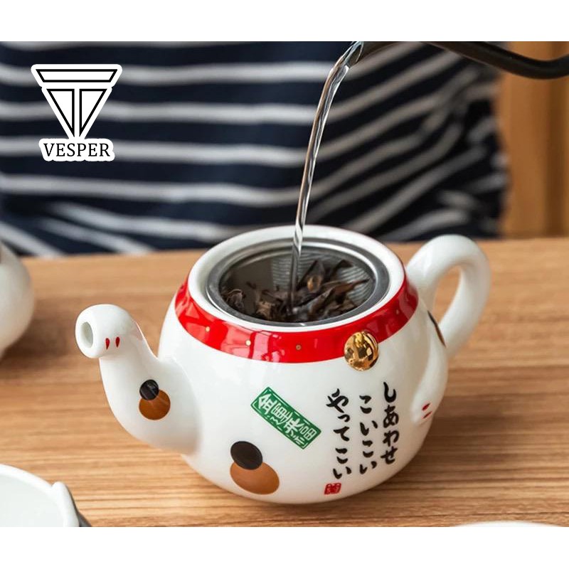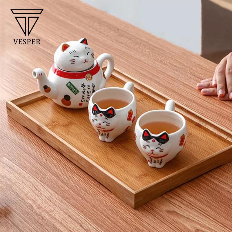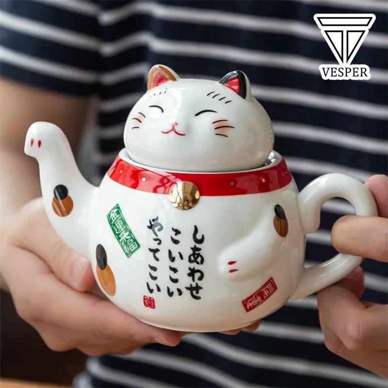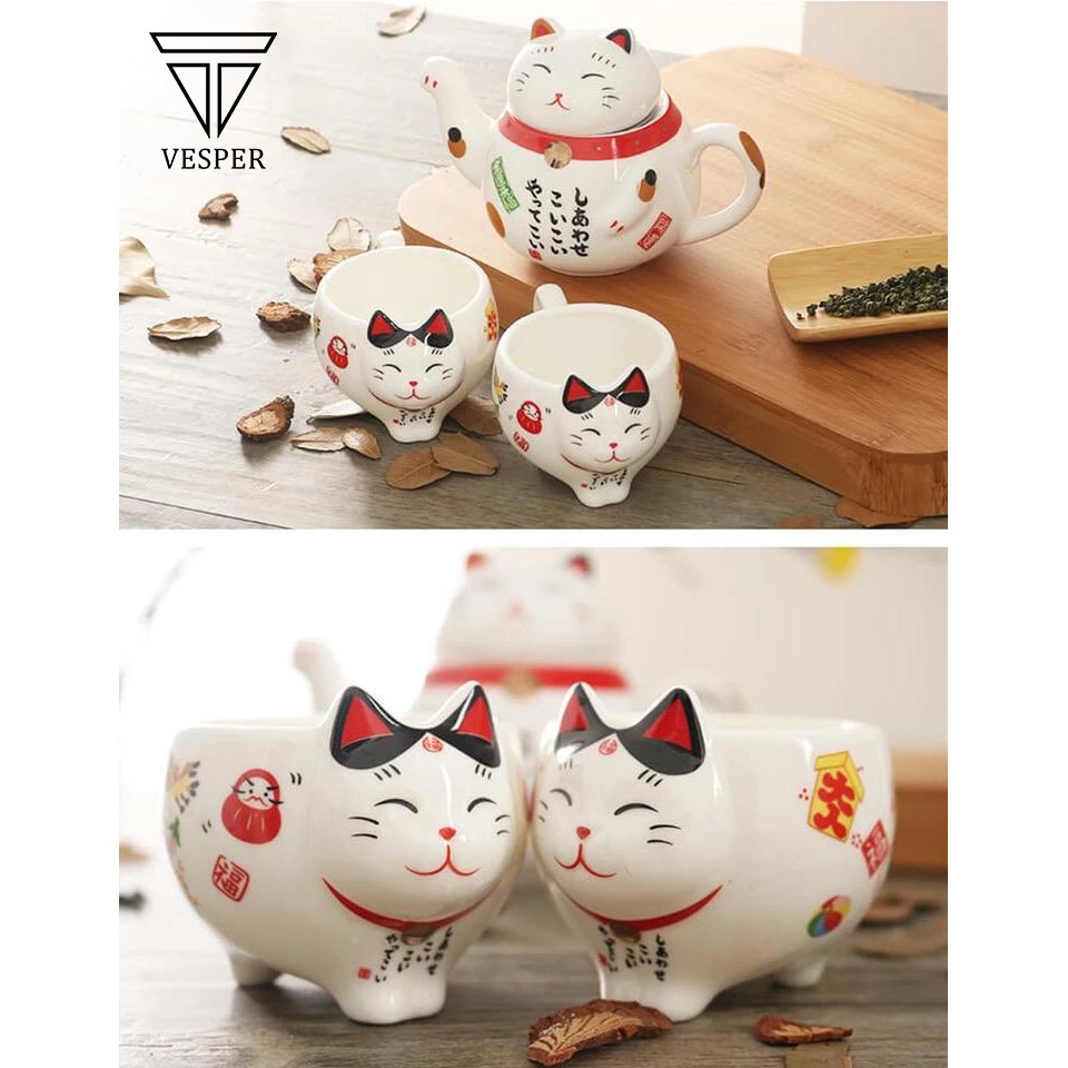 teko teh kucing / teapot cat ceramic set / cute japanese lucky cat tea pot cup set / teko teh lucu