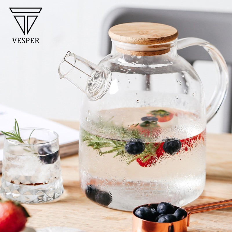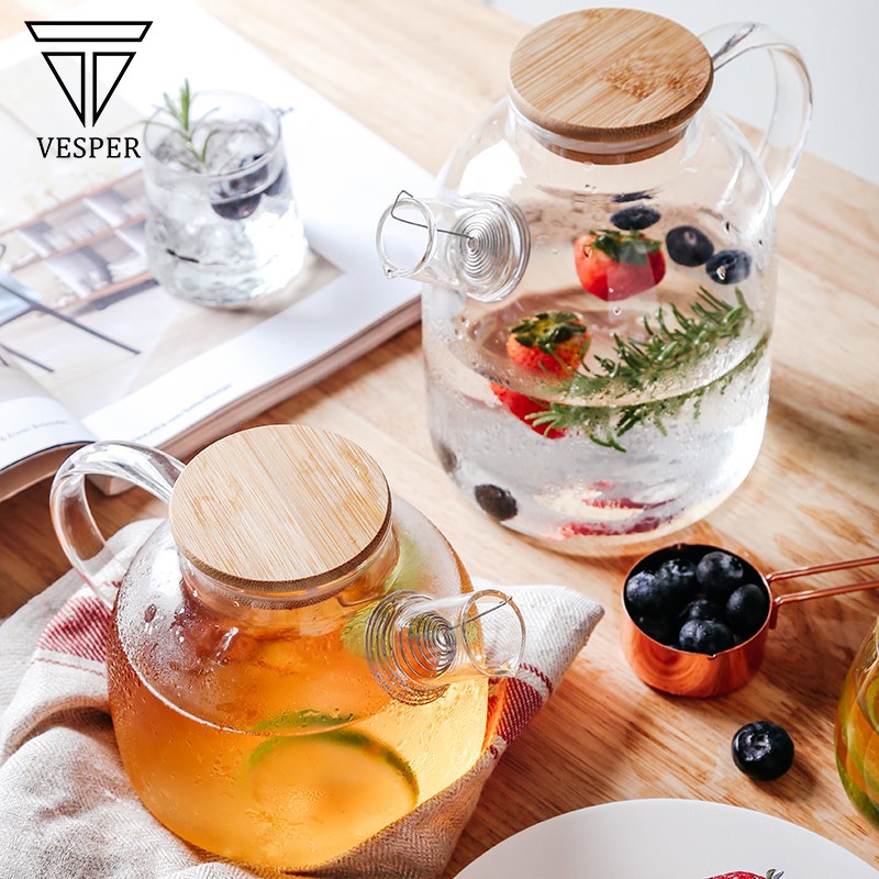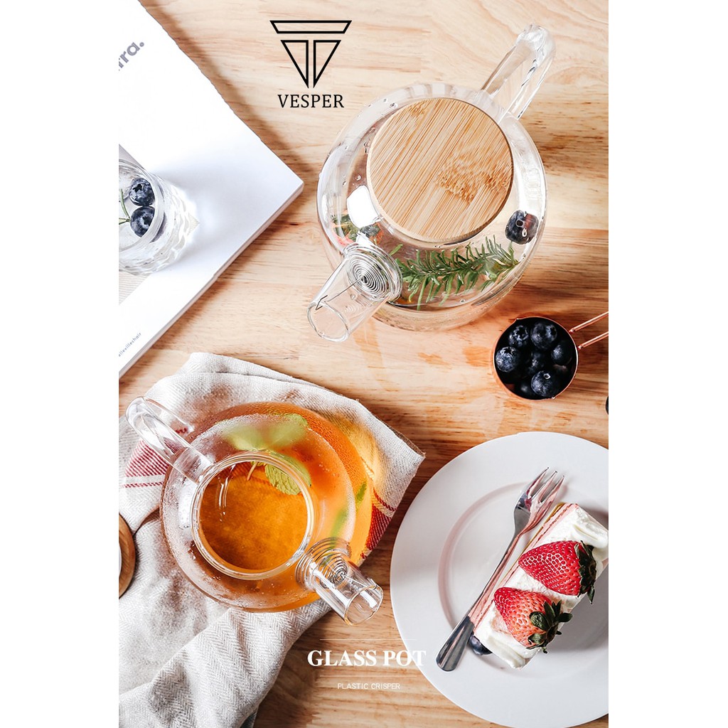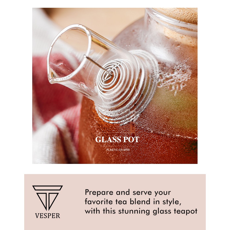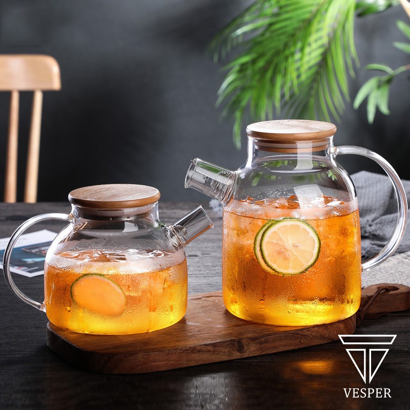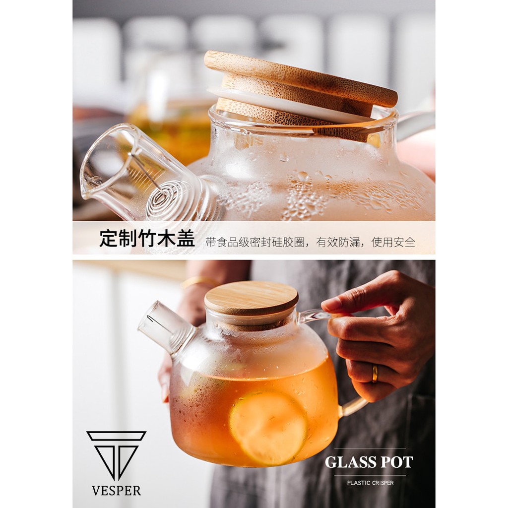 teapot wooden lid big 1,8liter borosilicate glass / teko teh kaca besar 1,8L / kung fu tea pot