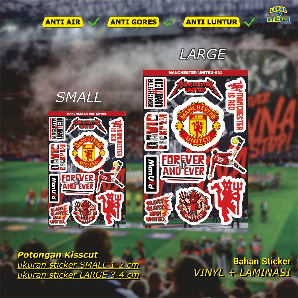 Stiker Manchester United Vinyl Premium – Sticker HP, Laptop, Helm, Motor, Anti Air, Awet, Keren