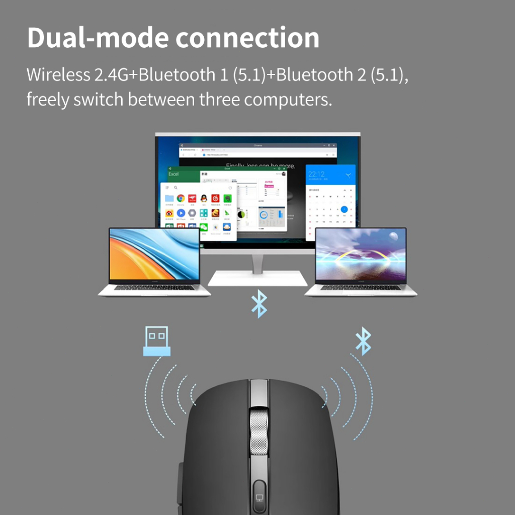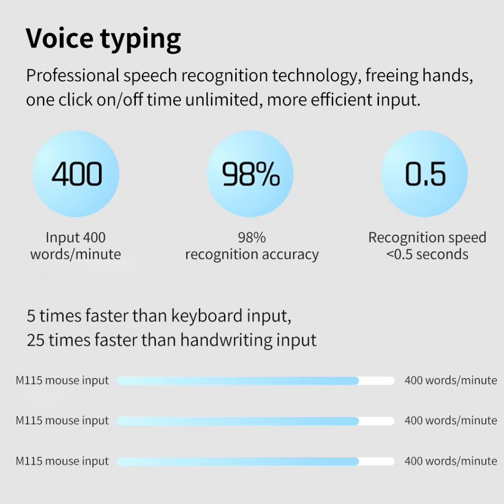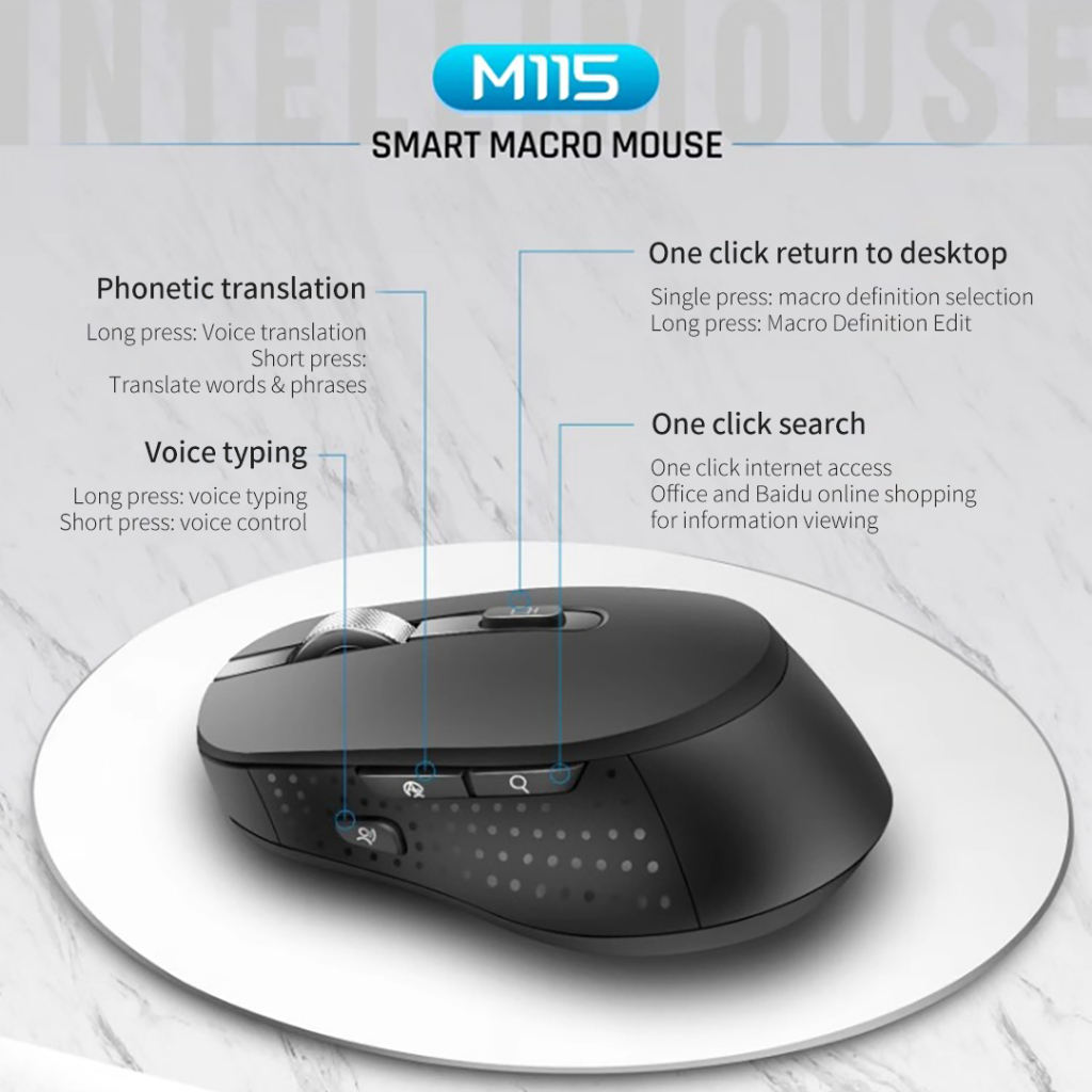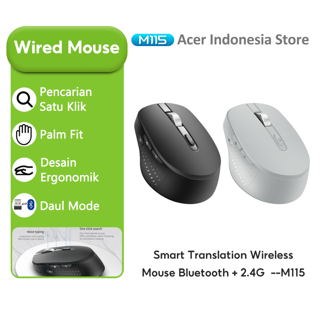 3Life M115 Mouse AI Cerdas Pengenal Suara Wireless and bluetooth Dengan, Receiver USB,Bass Klik , Rechargeable, Mendukung windows dan MAC OS PC Laptop