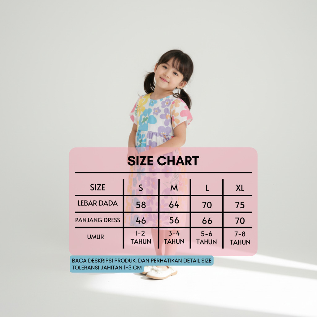 HallonaChic Damira Dress Anak Katun Premium Usia 1-8 Tahun Adem Simple Elegan