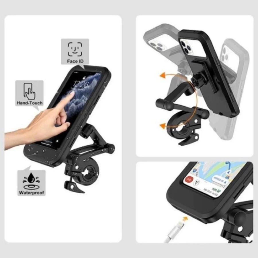 Holder Motor MH 302 & MH 303 Motor Stang Waterproof Universal 4in1 Tempat Dudukan Hp Di Stang Sepada Anti Air Stand Handphone alumunium black