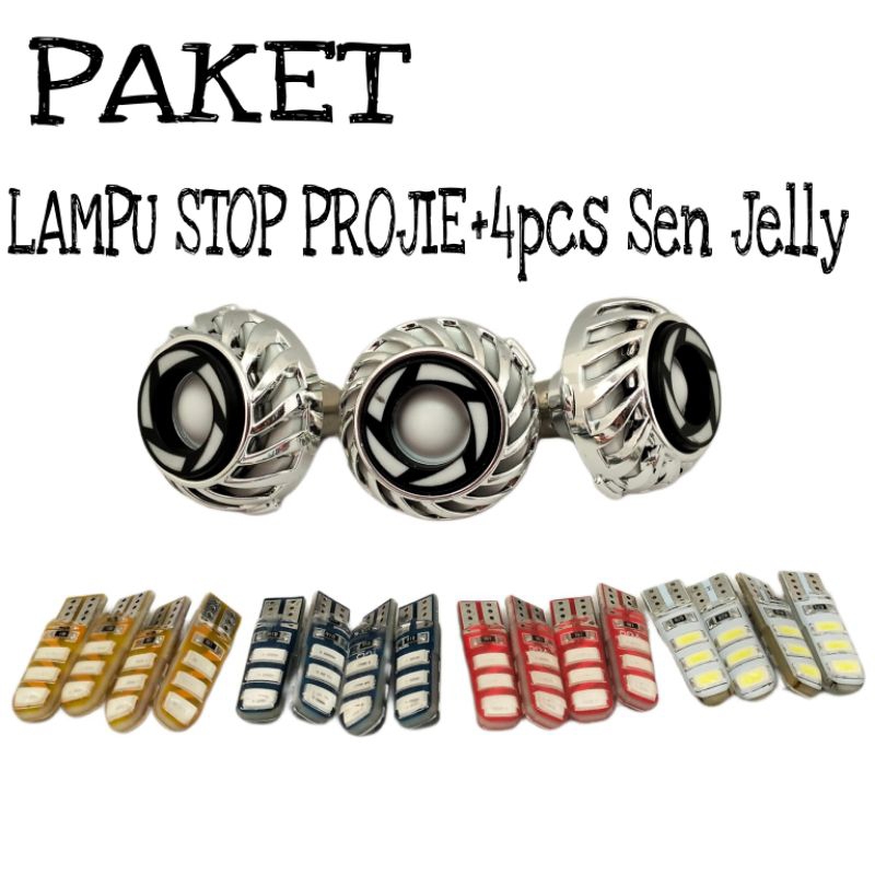 PAKET LAMPU MOTOR STOP PROJIE BELAKANG PLUS 4pcs LAMPU SEN JELLY KEDIP/FLASH DAN DIAM