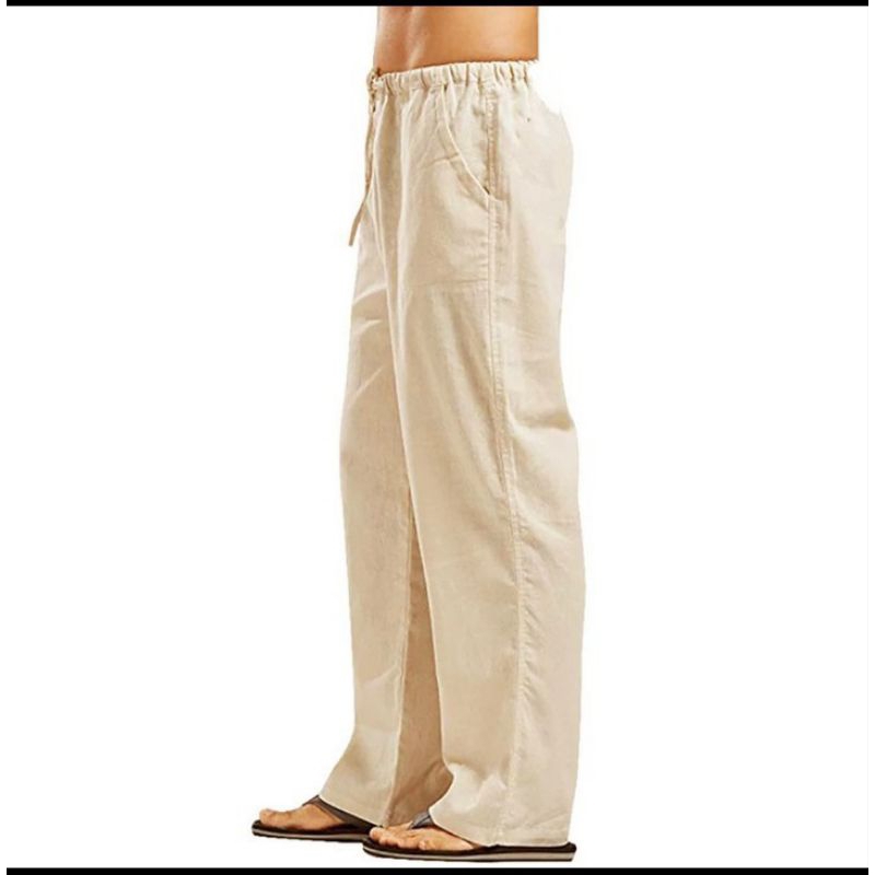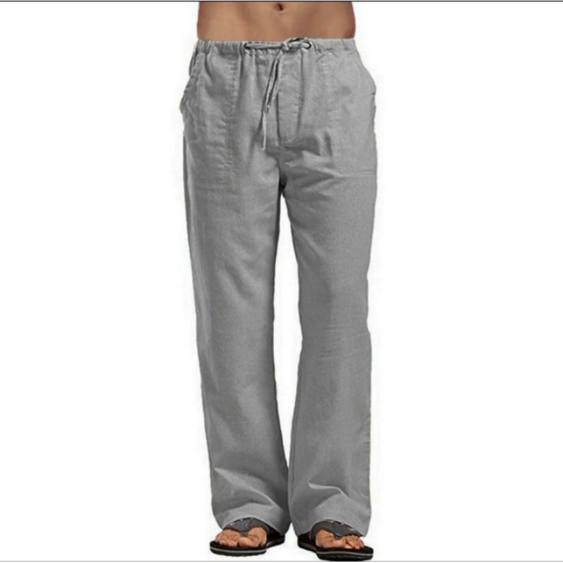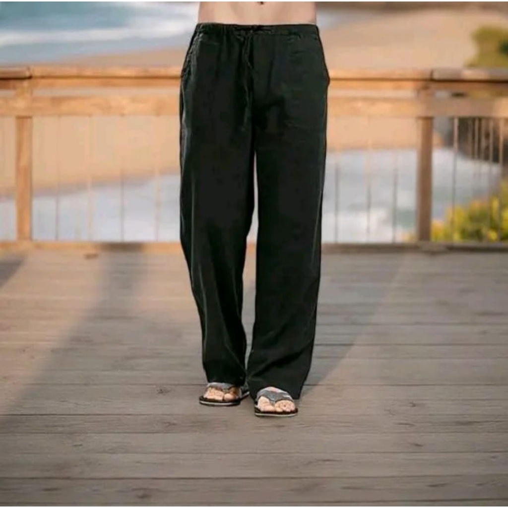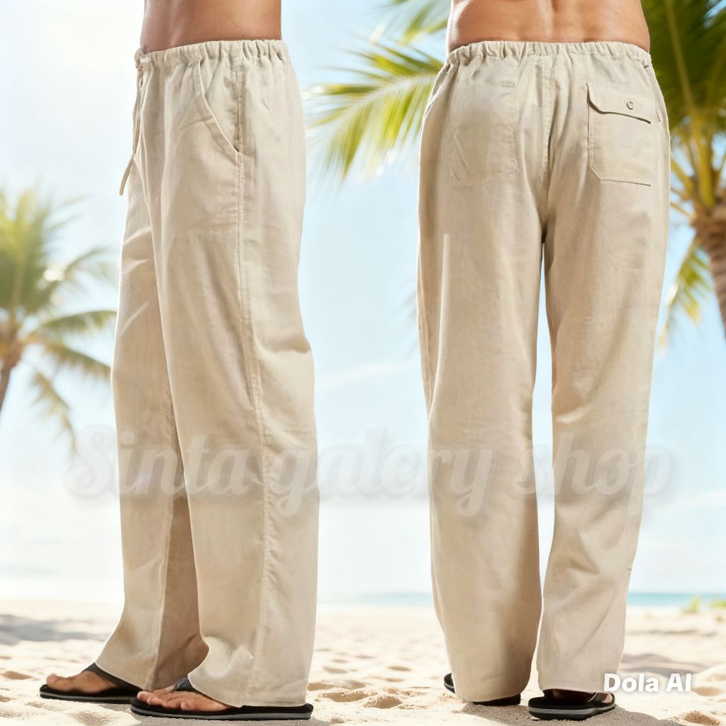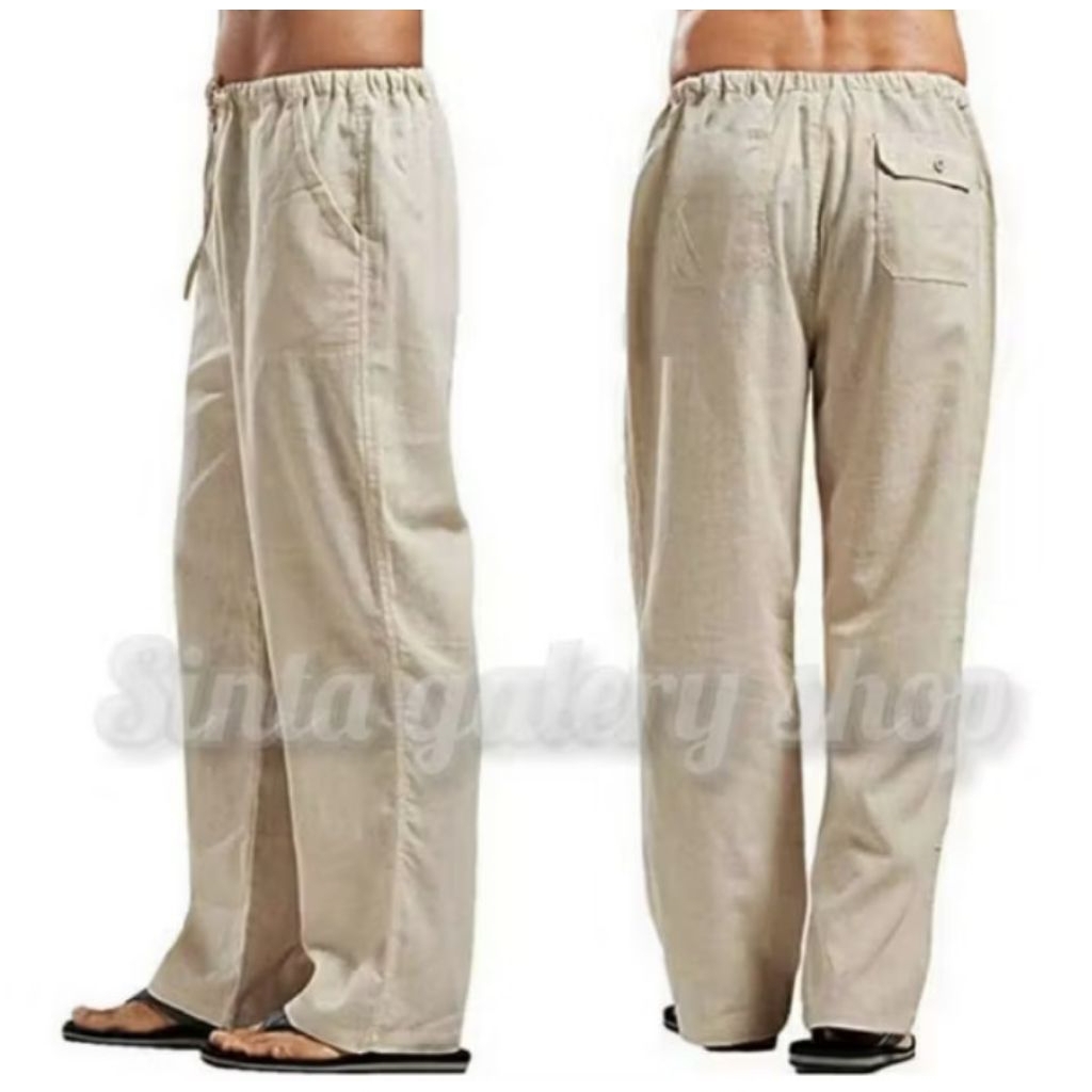 celana linen reguler oversize pria Korean style formal bahan katun linen rami premium