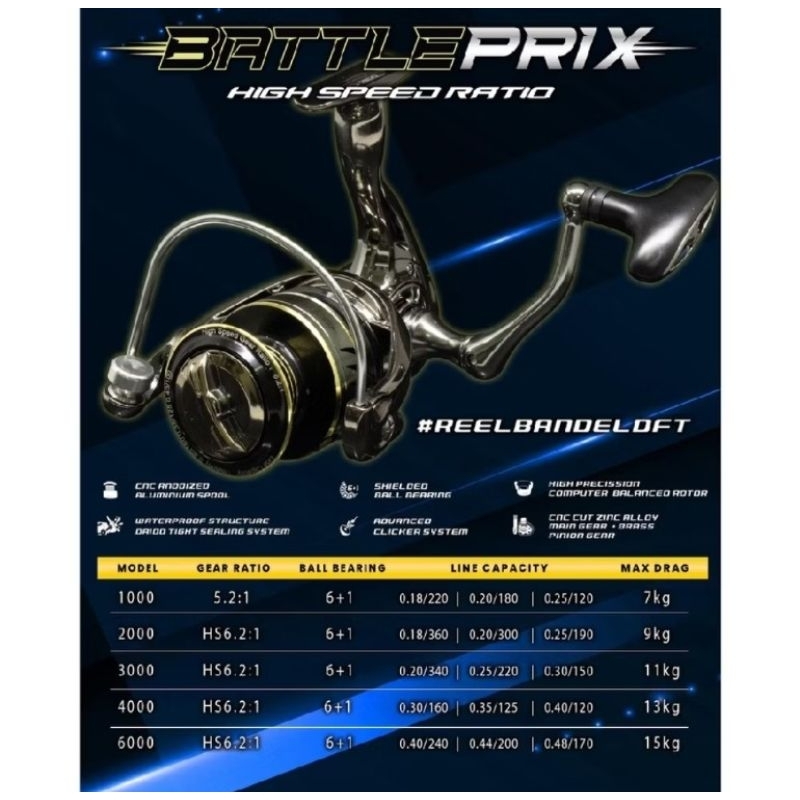 Reel Daido Battle Prix Waterproof 7.0 power handle
