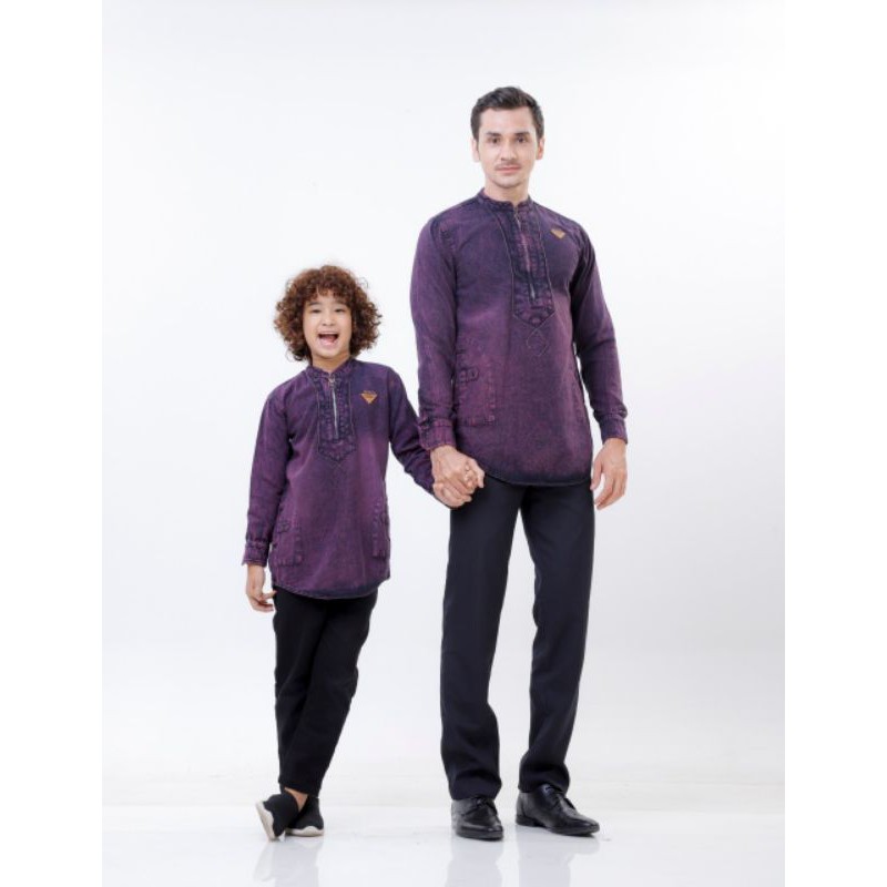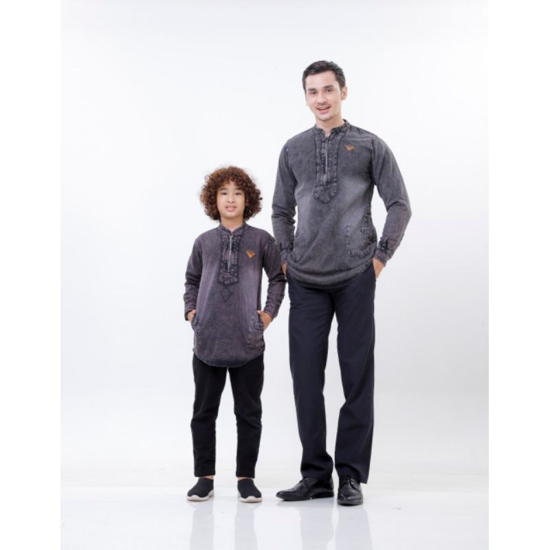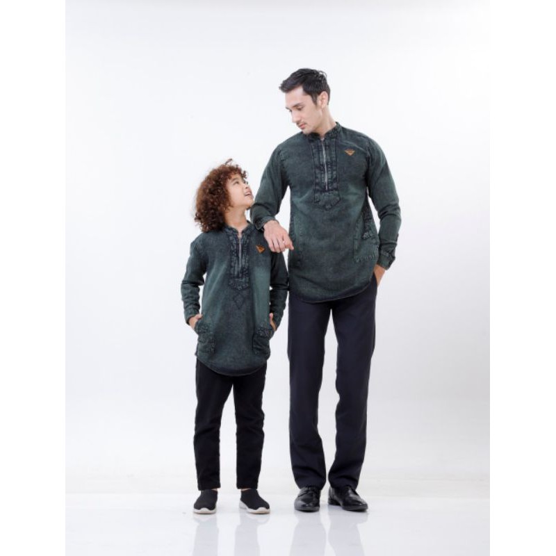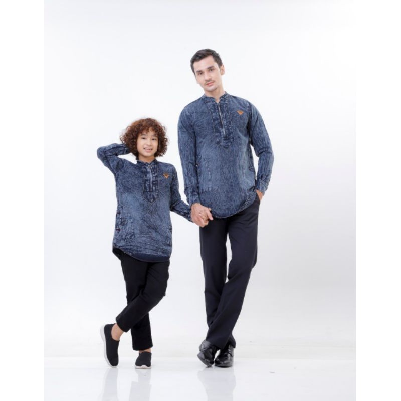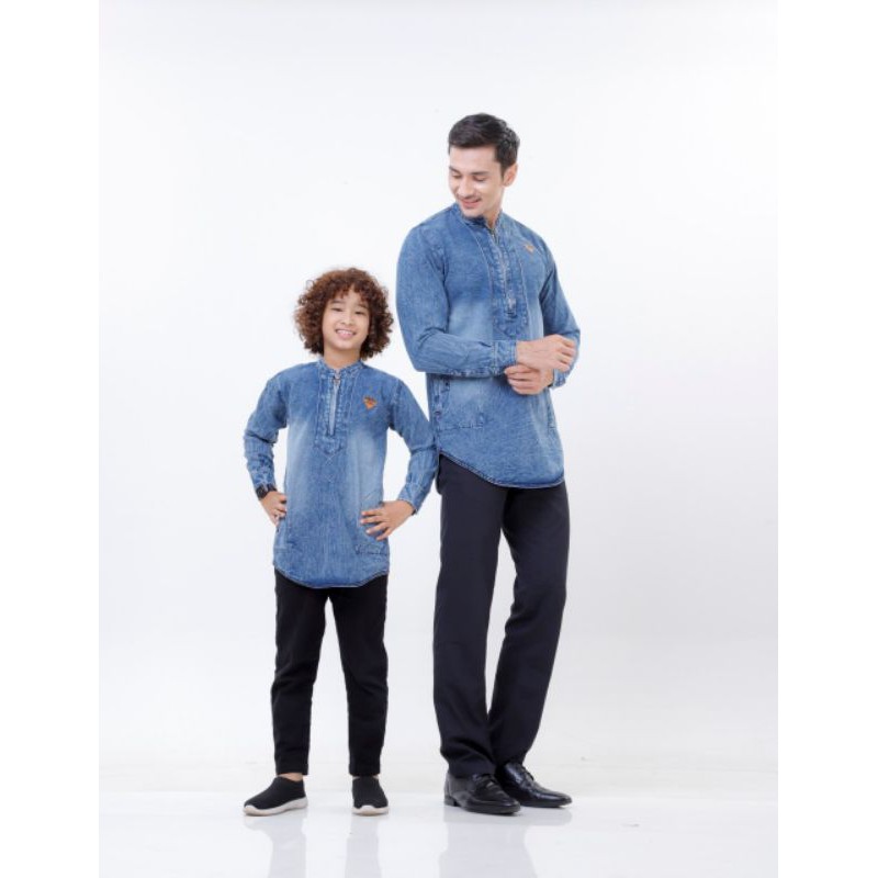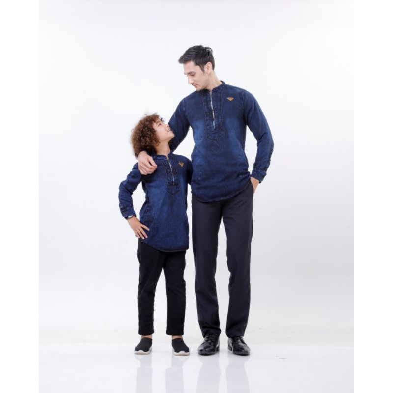 BAJU KOKO KURTA COUPLE AYAH DAN ANAK LAKI LAKI BAHAN DENIM