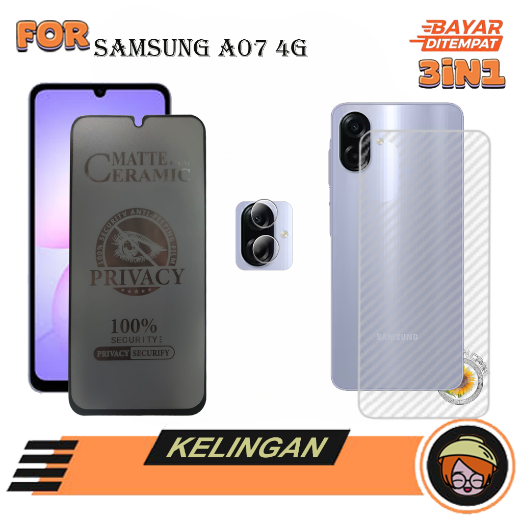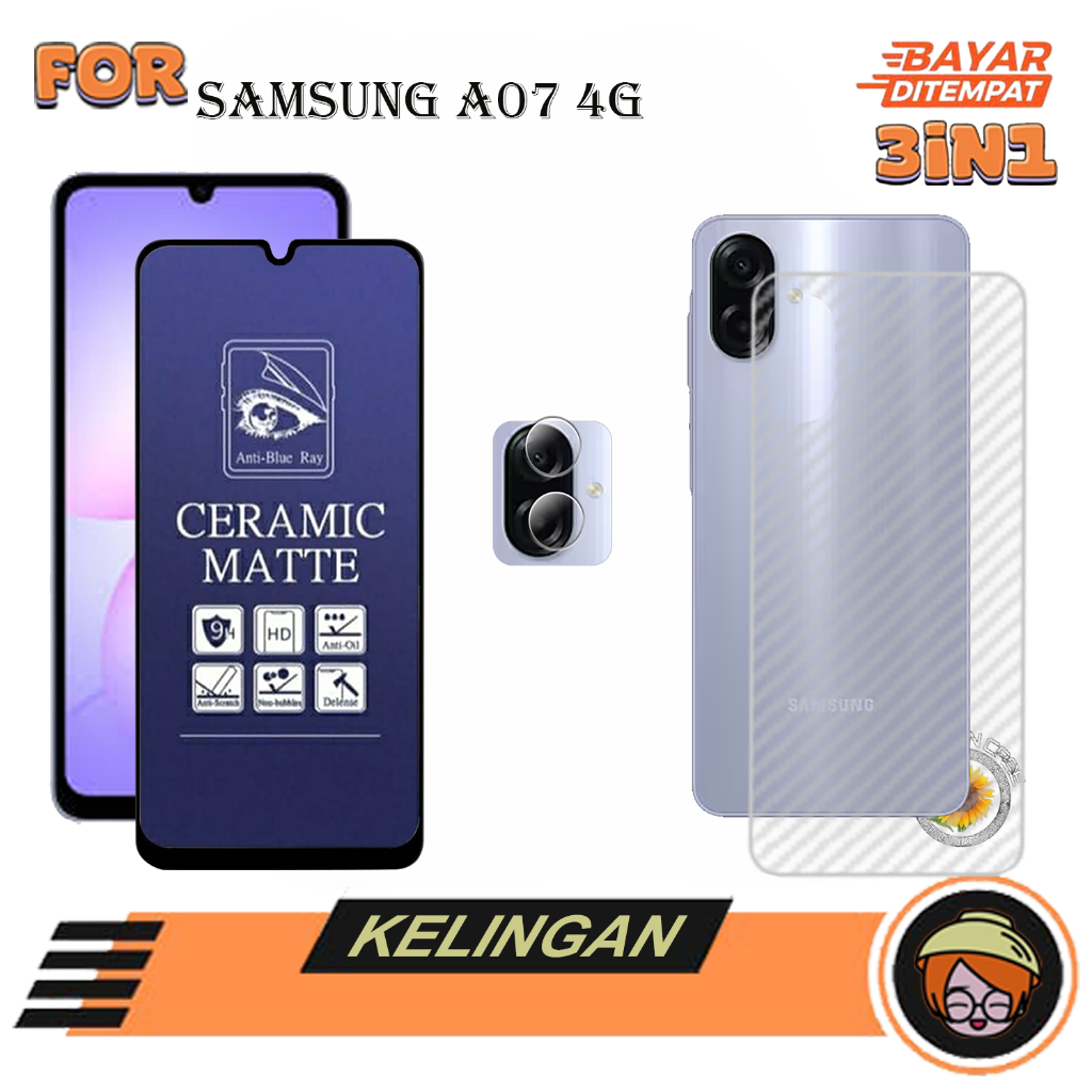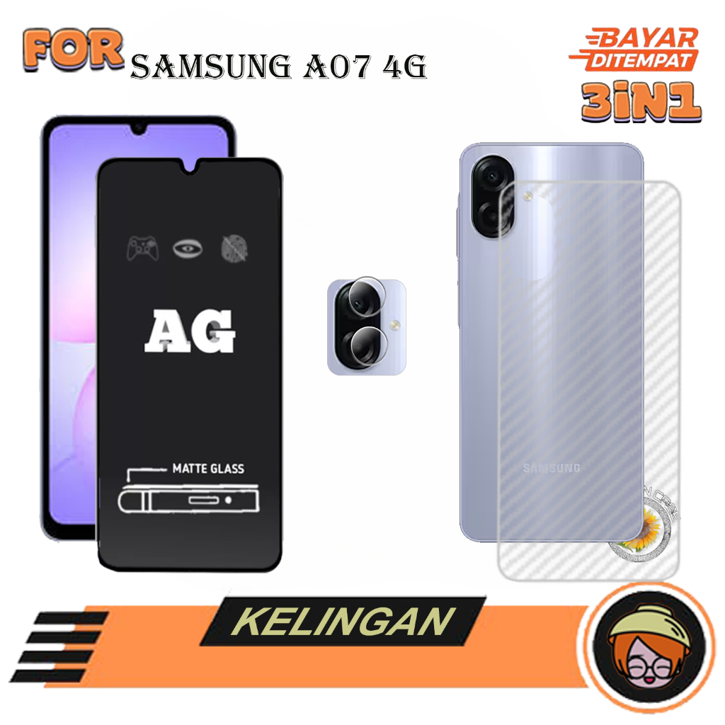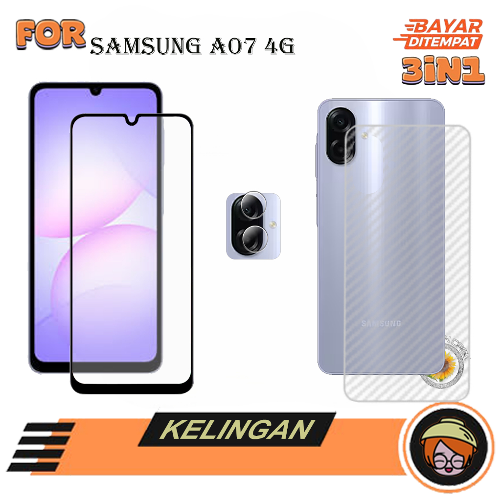 PAKET 3IN1 Anti Gores SAMSUNG A07 4G Tempered Glass kaca Full Cove