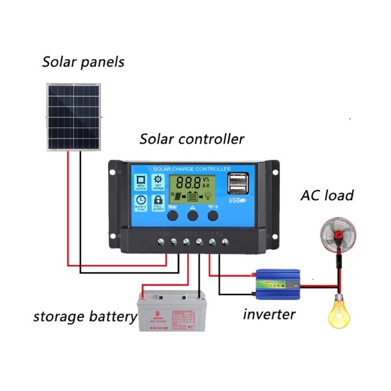 Solar Charge Controller 10A-60A Cell PWM Pengisi Daya Surya 12V/24v