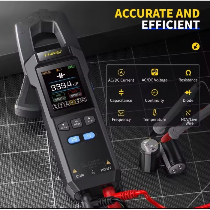 FNIRSI DMC-100 AC DC Current Clamp Meter 10000 Counts | Tang Ampere Digital 600A | Digital Multimeter 750VAC | NCV - True RMS - Auto Range - Electrician Tools | DMC100 DMC 100