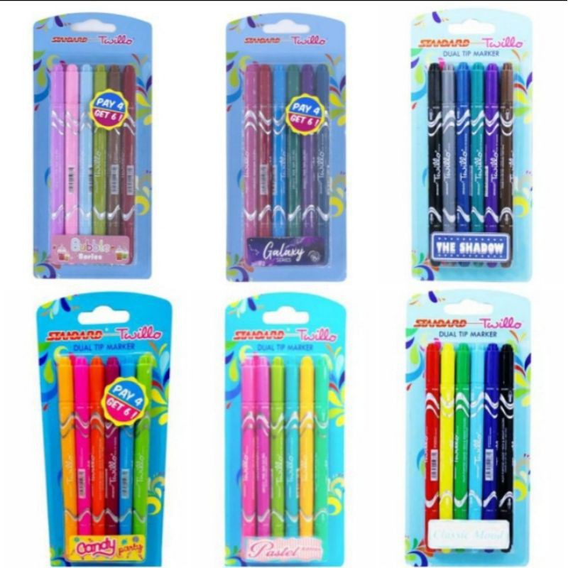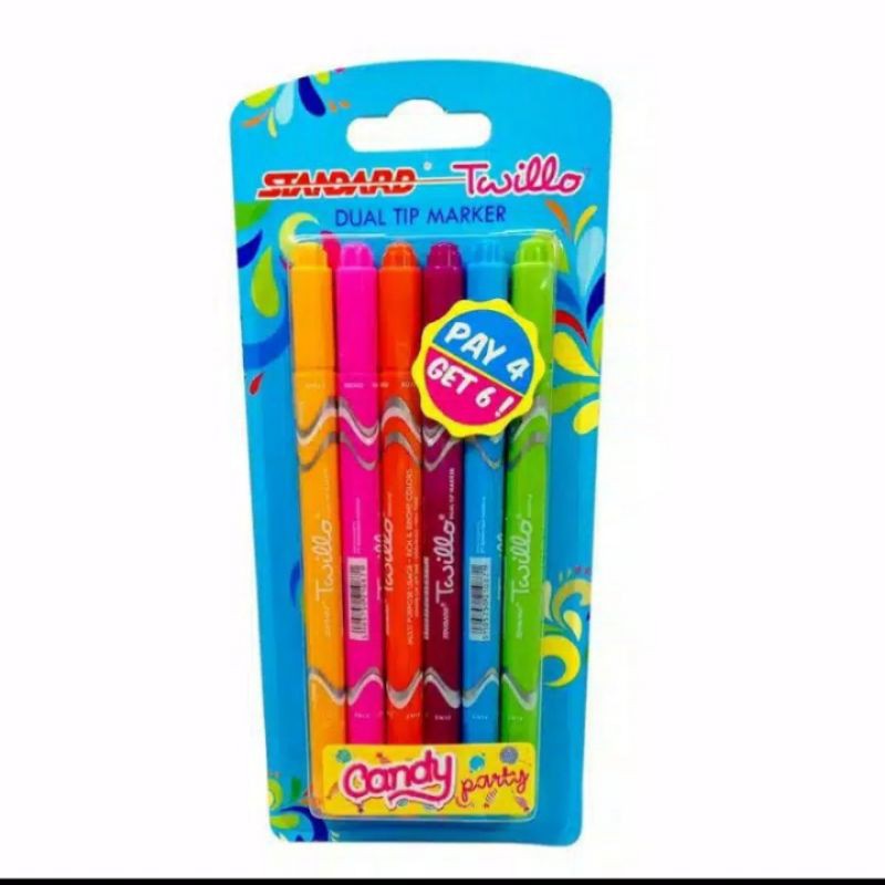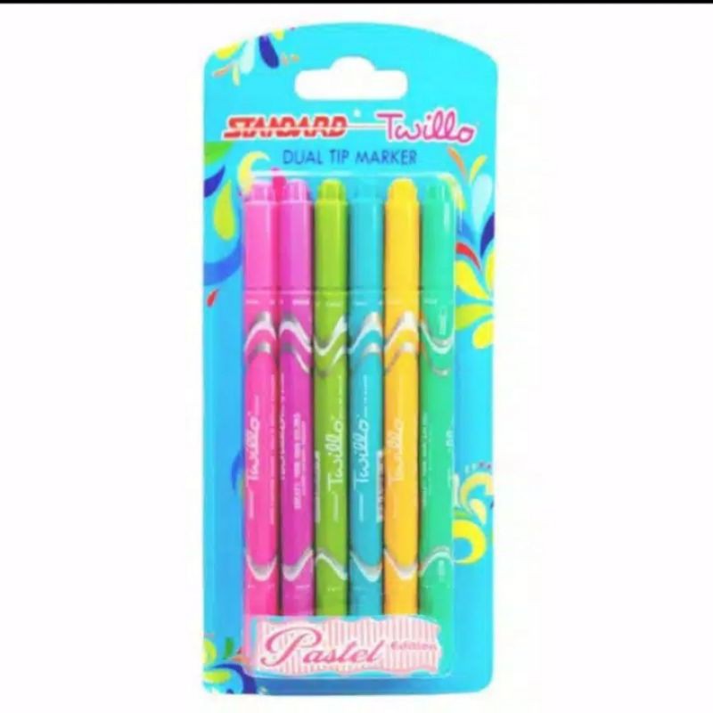 STANDARD PEN Blister Twillo dual tip marker isi 6 mix color highlight