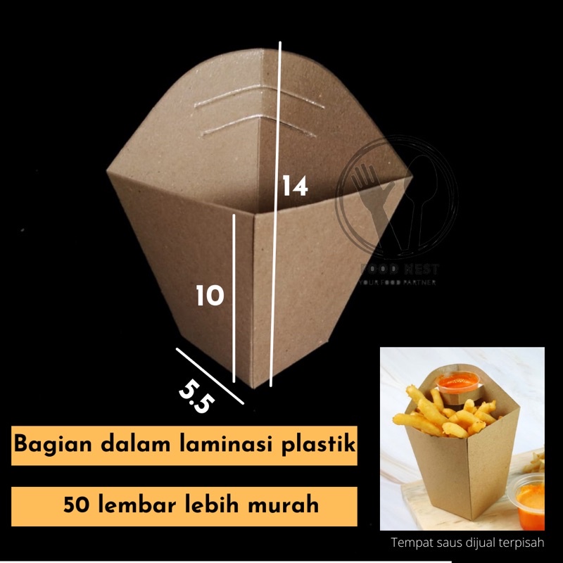 FRIES BOX TEMPAT KENTANG BOX KENTANG GORENG WADAH TEMPAT KENTANG GORENG BOX CHURROS DONAT MINI FRIES BOX KERTAS KENTANG COKLAT LAMINASI BOX KENTANG GORENG