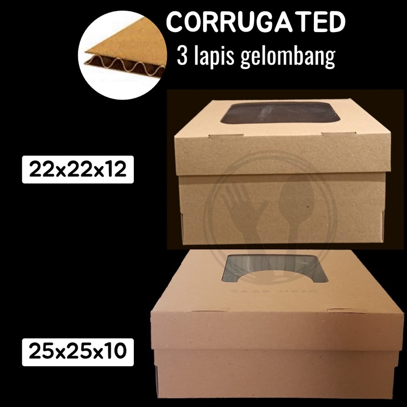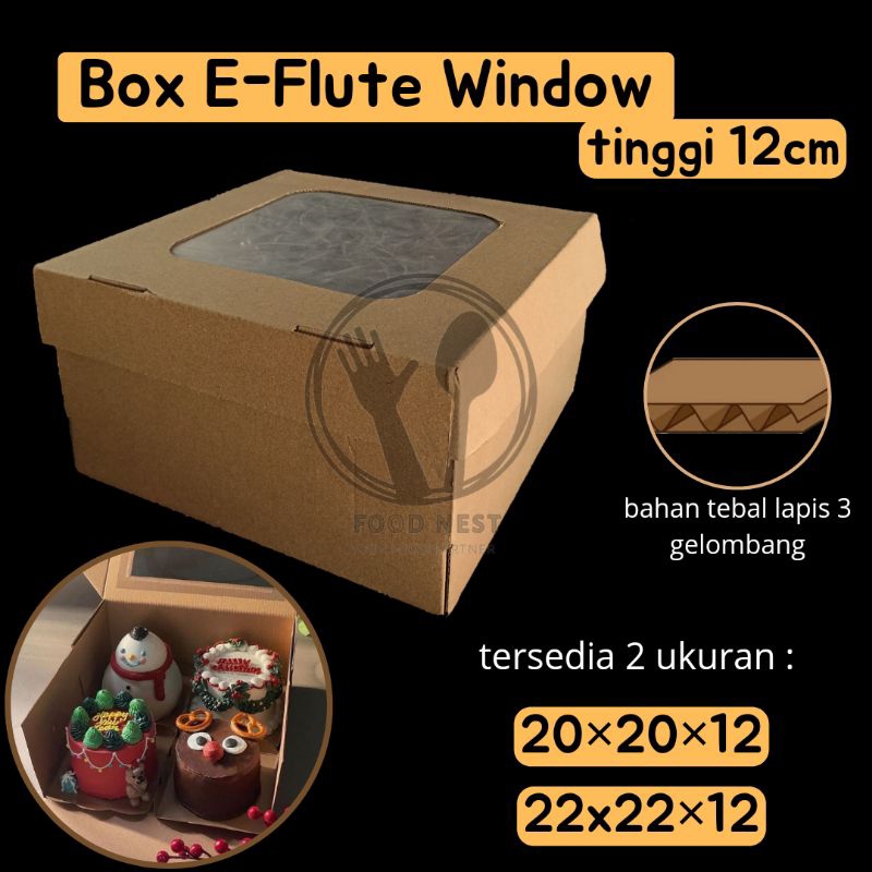 DUS KOTAK BOX HAMPERS 22x22x12 20x20x12 EFLUTE JENDELA MIKA / TAS BOX KOTAK KUE TART 20x20x12 EFLUTE WINDOW / DUS BOX KOTAK COKLAT / BOX KARDUS E-FLUTE COKLAT UNTUK PACKAGING OLSHOP SOUVENIR BAJU / KOTAK KADO HAMPERS CAKE 22x22x12 20x20x12