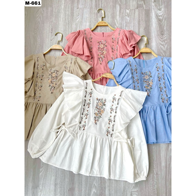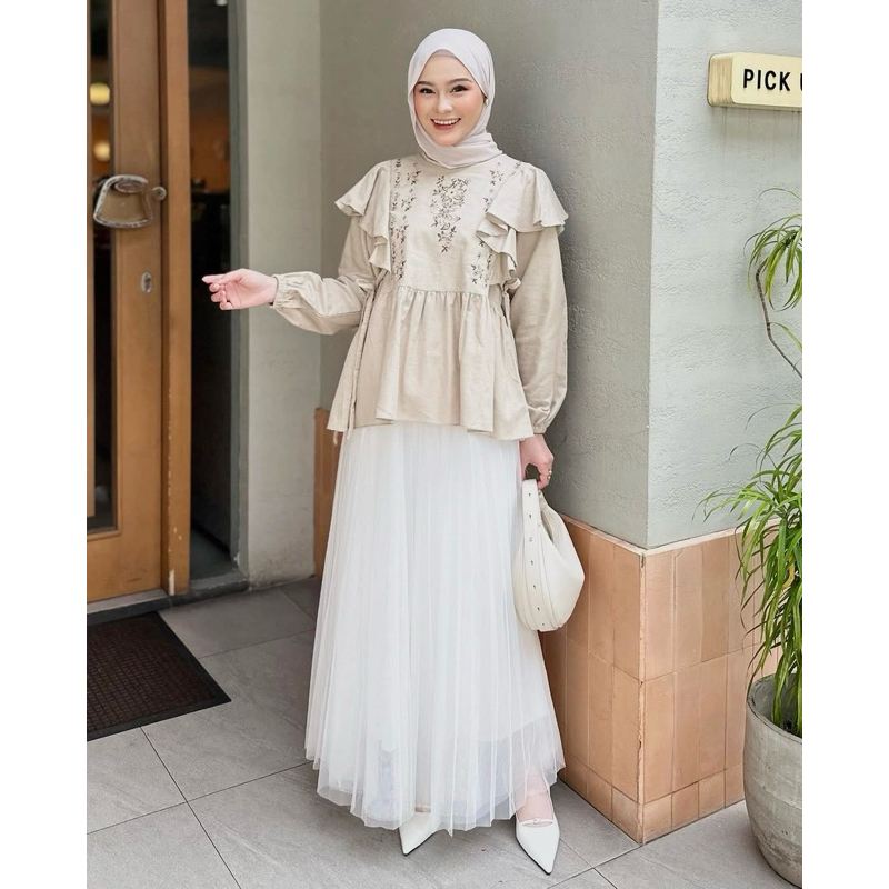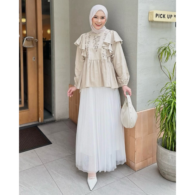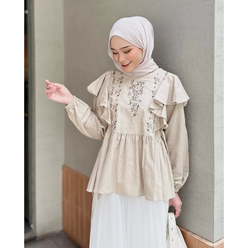 [ycl] SHIREEN BLOUSE - ATASAN WANITA LINEN BORDIR BUNGA VINTAGE | BLUS LINEN BORDIR BUNGA RUMBAI TALI SAMPING | ATASAN LINEN VINTAGE KOREA