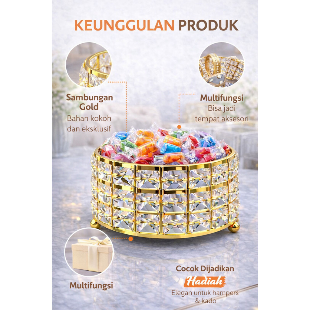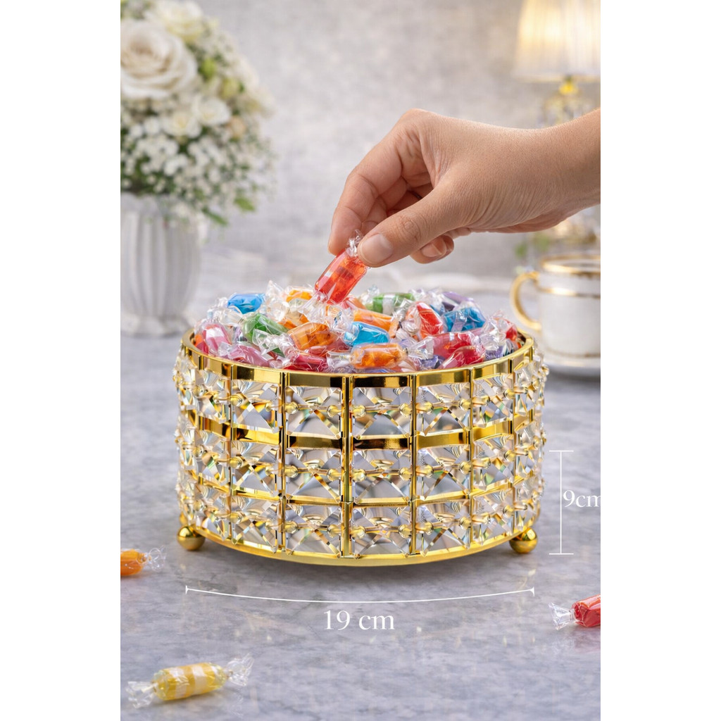 Tempat Sajian Kristal Gold Elegan Multifungsi untuk Meja Tamu kotak serbaguna