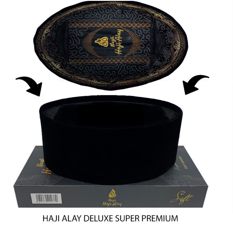 PECI SONGKOK HAJI ALAY DELUXE SUPER PREMIUM KOPYAH HITAM POLOS AC & NON AC