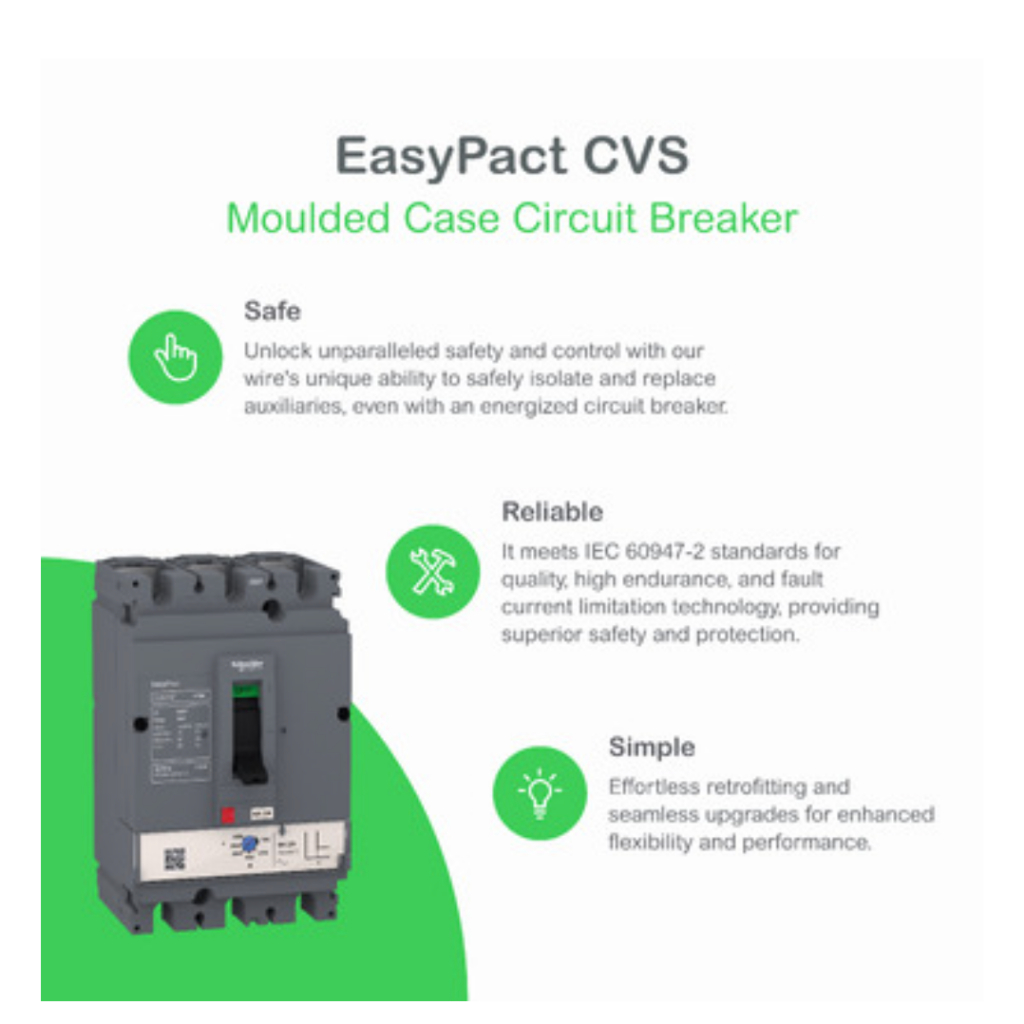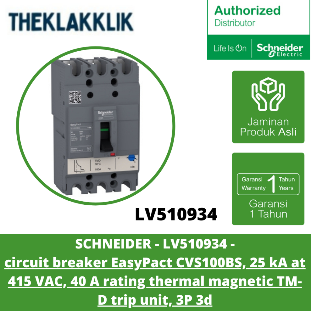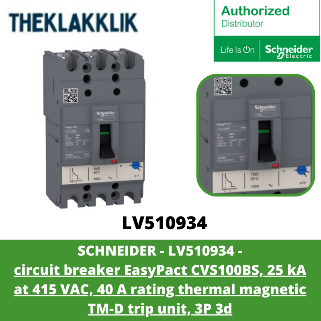 SCHNEIDER - LV510934 - circuit breaker EasyPact CVS100BS, 25 kA at 415 VAC, 40 A rating thermal magnetic TM-D trip unit, 3P 3d