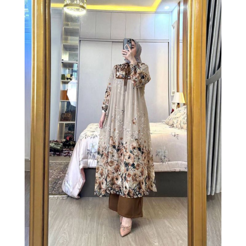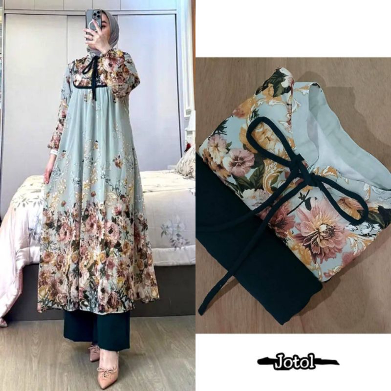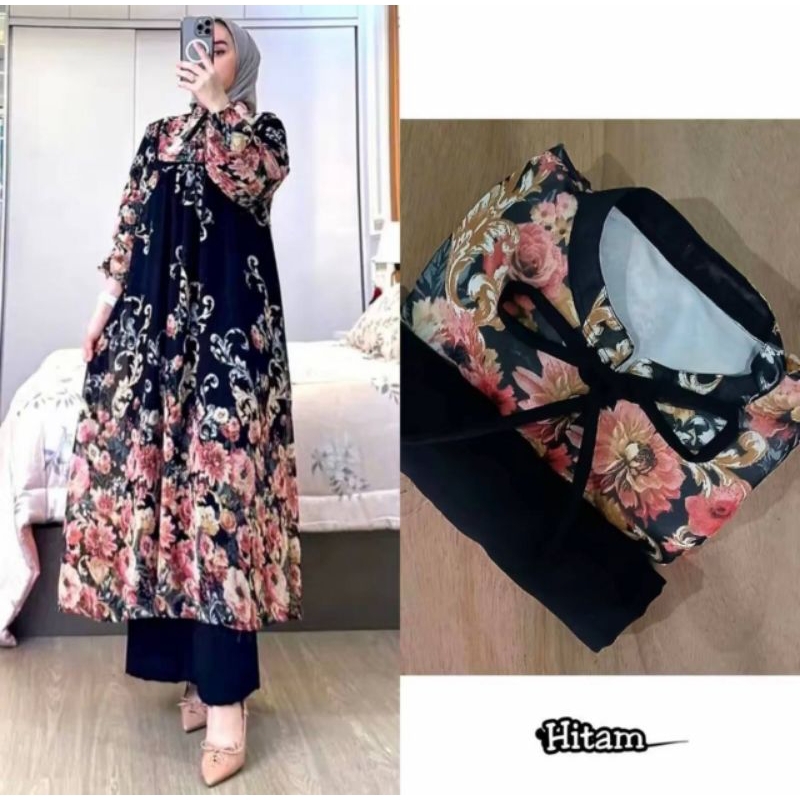 Setelan Long Tunik Melia Rayon Diamond Busui Kancing