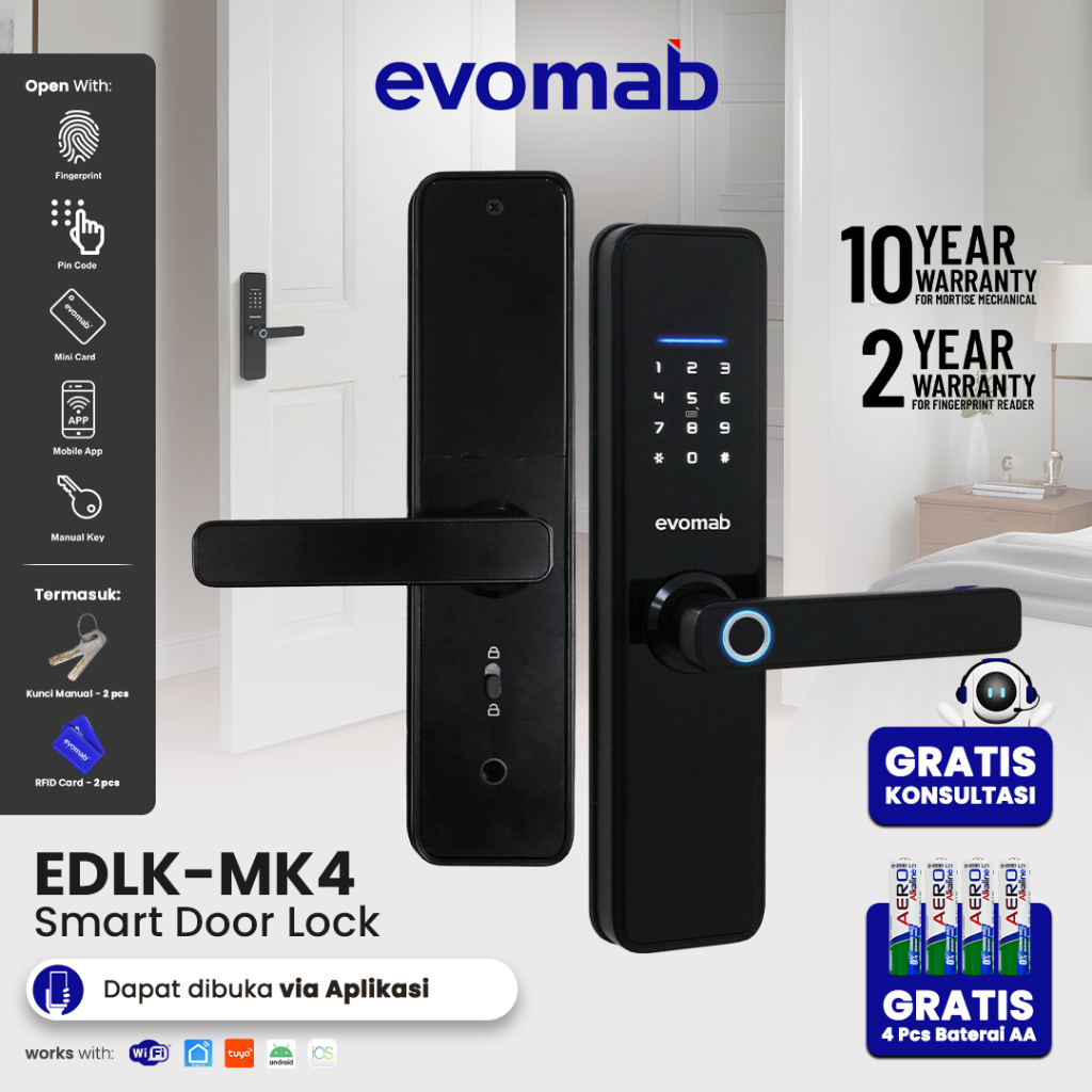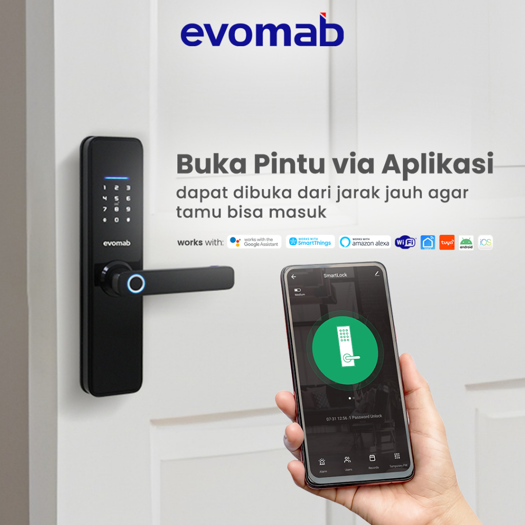 evomab Smart Door Lock Handle Pintu Kunci Digital Wifi Aplikasi Tuya EDLK-MK4