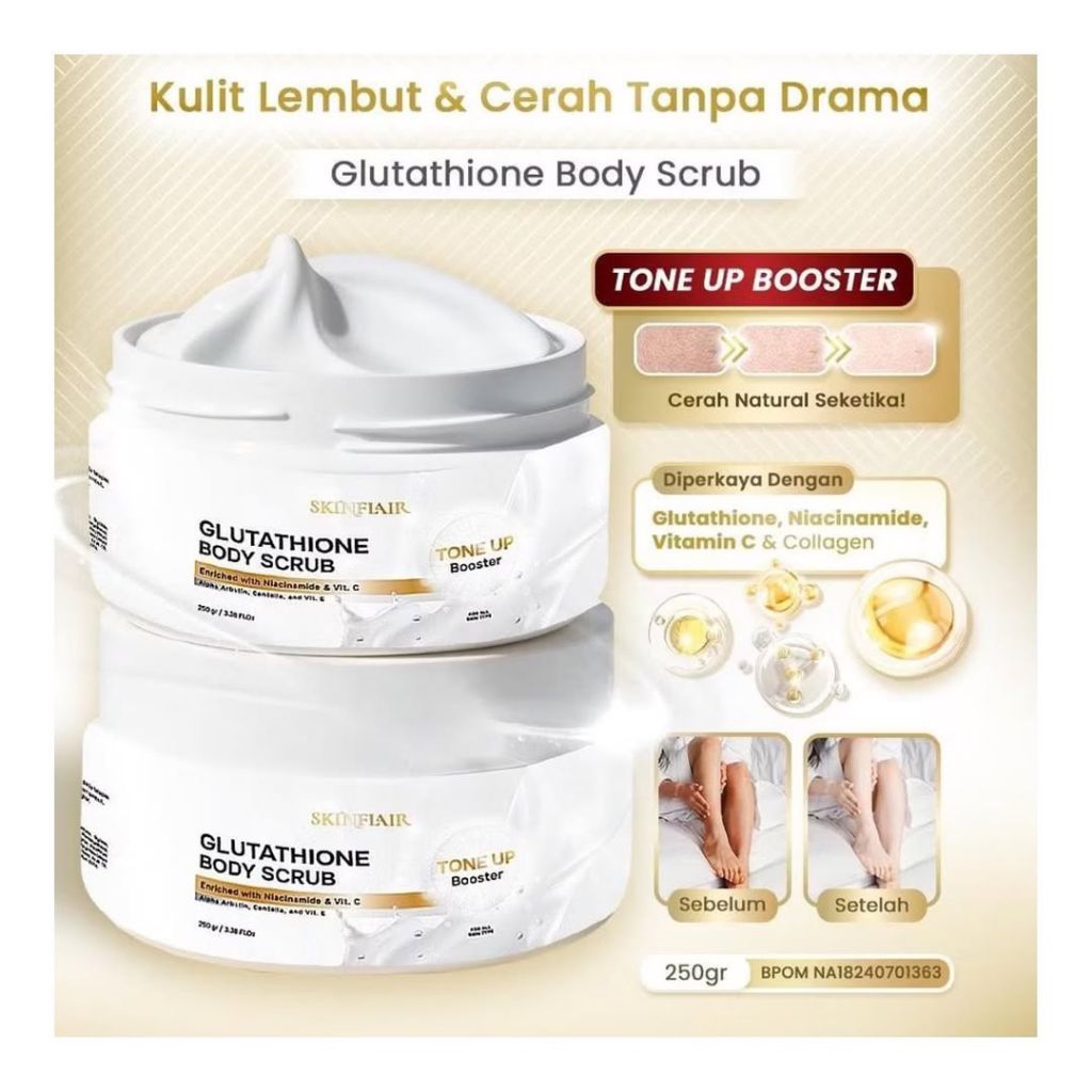 SKINFLAIR Glutawhite Milky Lotion Glutathione Series – Body Scrub & Brightening Body Lotion Extra Whitening | Body Lotion Tone Up | Body Scrub Tone Up | Mencerahkan, Melembapkan, Angkat Sel Kulit Mati (BPOM)