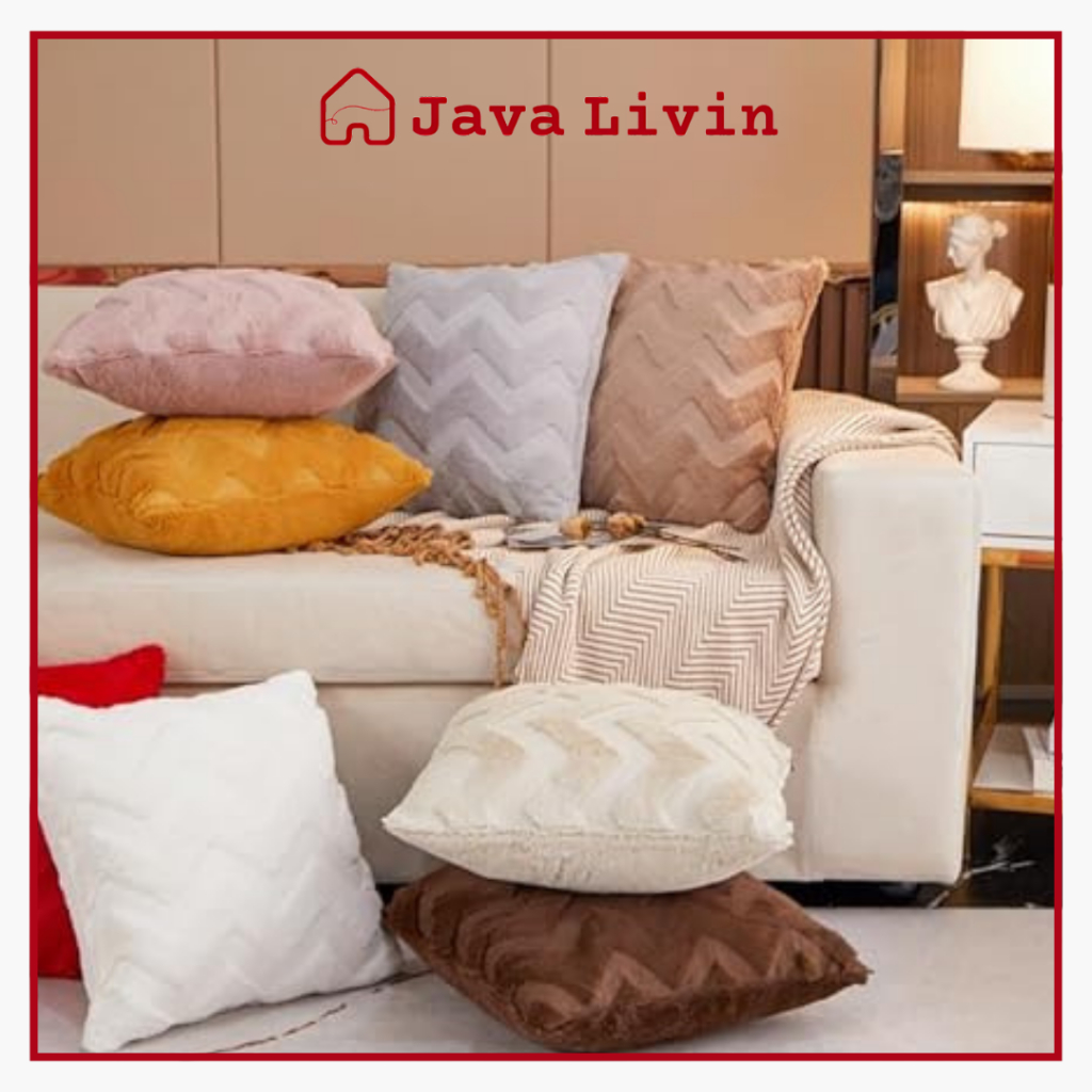 JAVALIVIN Nordic ZigZag Pillow Cover /Sarung Bantal ZigZag Sofa Kursi Premium Bludru Bulu Lembut Cantik