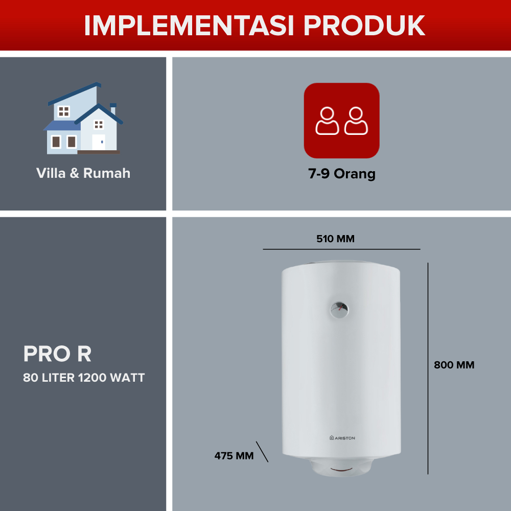 Ariston Water Heater Pro R 80 Liter 1200 Watt