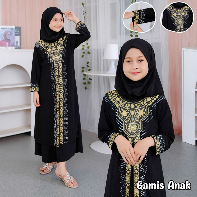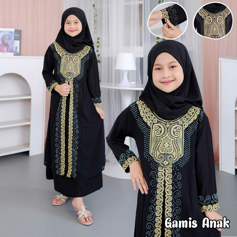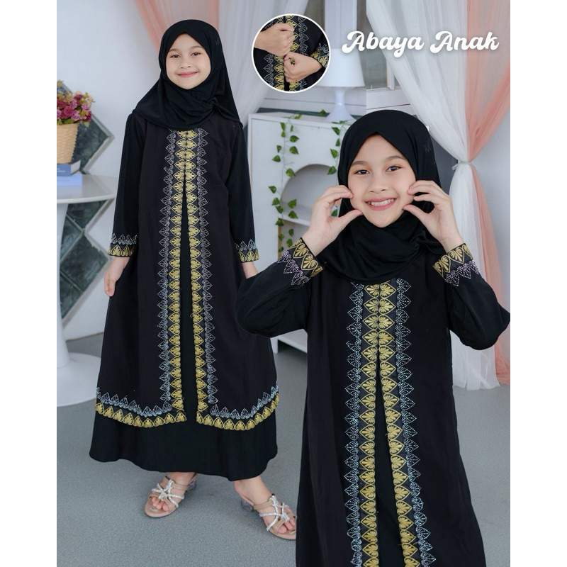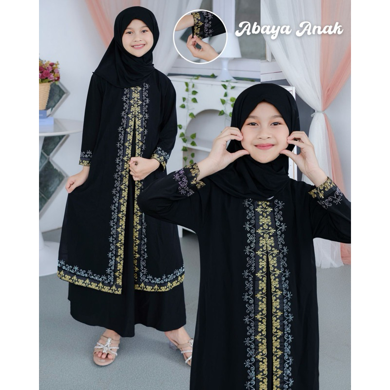 ARIA COLLECTION Abaya Dress Jetblack Premium Gamis Anak Motif Bordir Payet Usia 1-12 Tahun