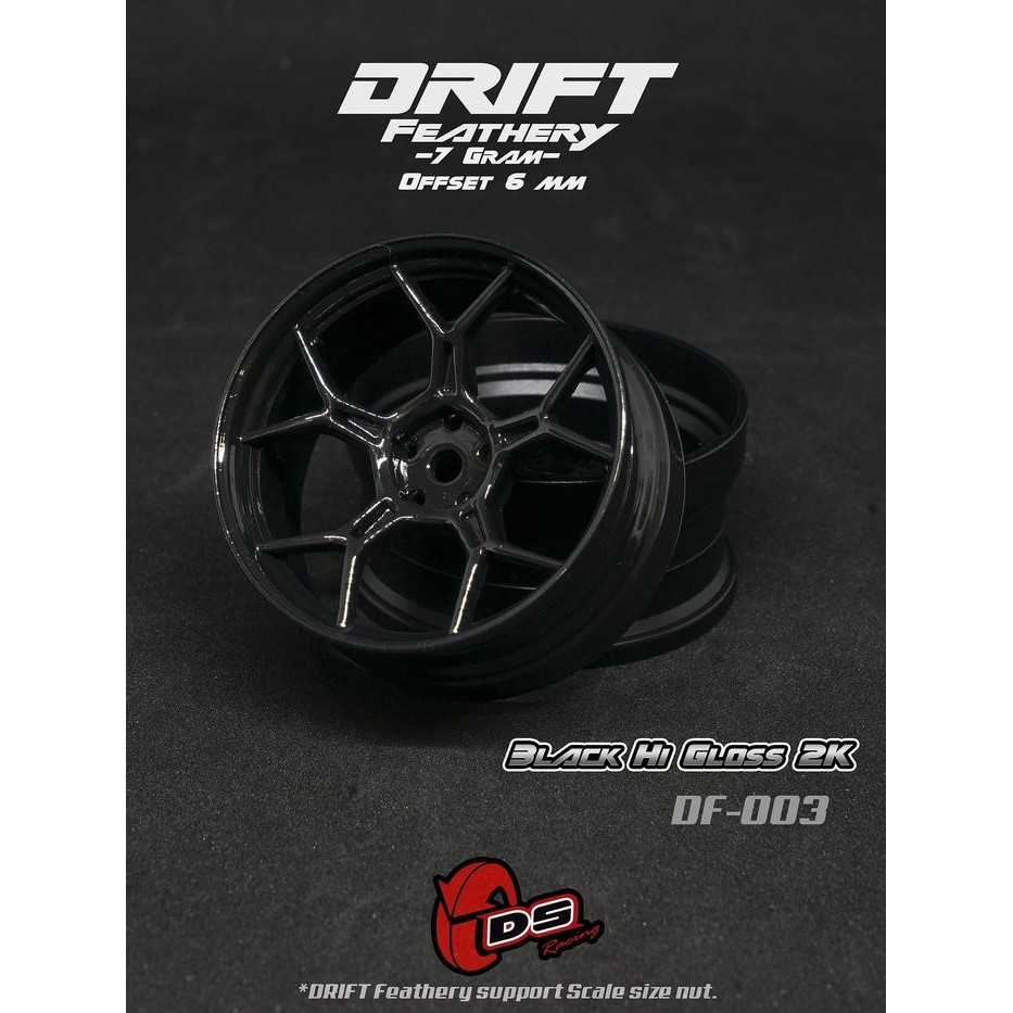 DS RACING DRIFT FEATHERY RIMS (BLACK HI GLOSS 2K) +6MM #DF-003