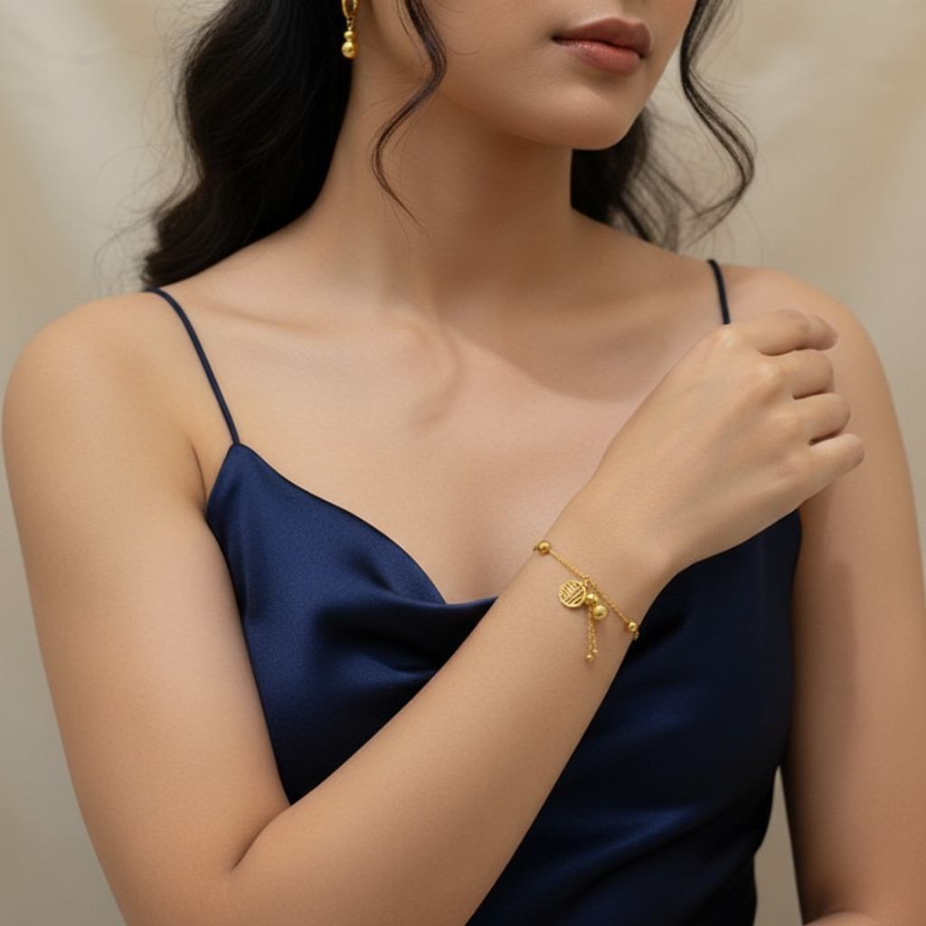 Set Gelang Serut Kendi Hoki dengan Anting Hoop Bandul Kendi Bahan Titanium Awandini Jewelry