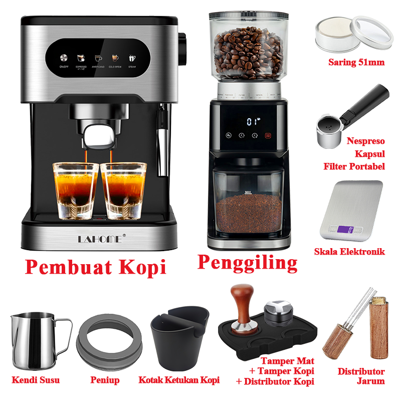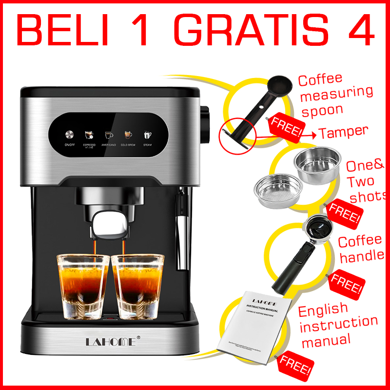 LAHOME Smart Touch Mesin Kopi Espresso Otomatis 5 In 1 Function Digital Coffee Machine Cold & Hot Brew Maker 20Bar
