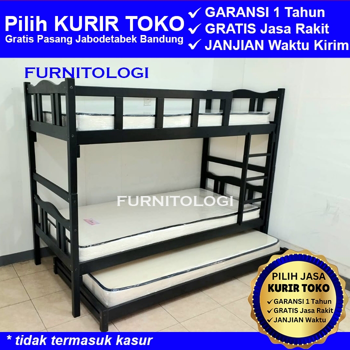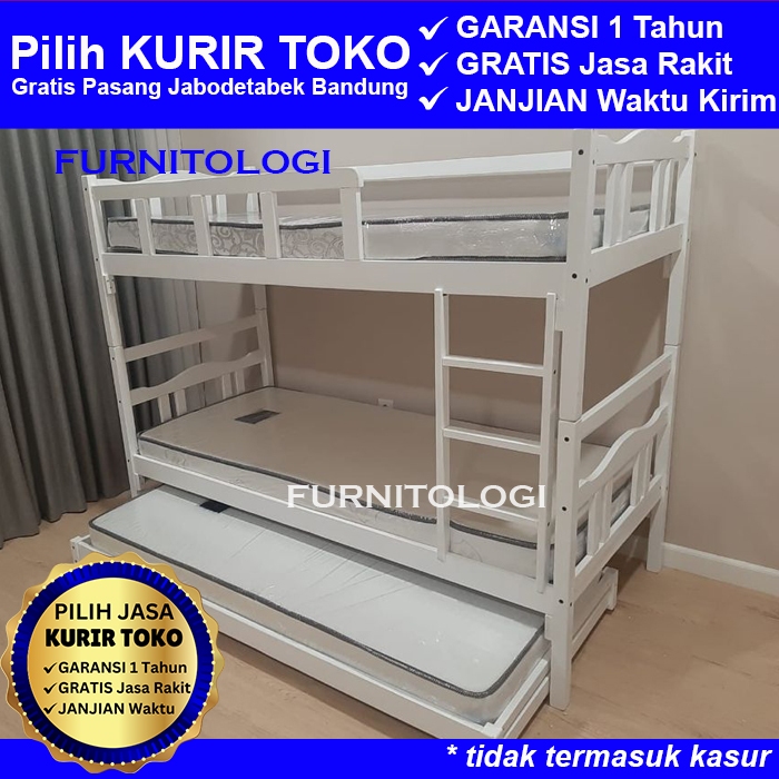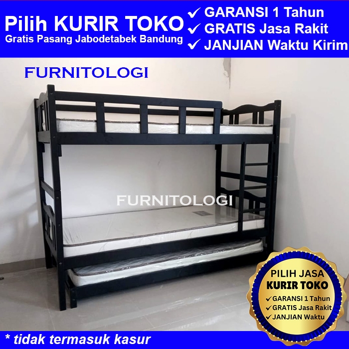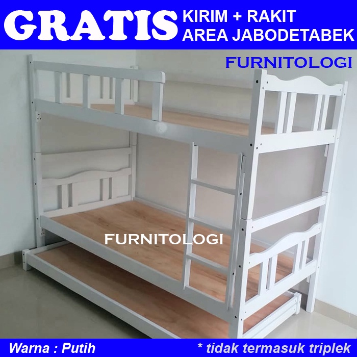 Ranjang susun Kayu + Sorongan Kayu 90x200 Ranjang 3 Tingkat Ranjang Susun Kayu Dipan Tingkat Warna Putih Hitam dan Coklat Salac