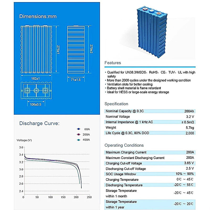 CALB/BYD UPS BMS Lifepo4 200AH/120AH 12V BMS Baterai litium CALB Lifepo4 3.2v GRADE A 200Ah, set isi 4 baterai, gratis mur dan busbar. Elektrik Baterai Lithium LIFEPO4 3.2V 200Ah UPS