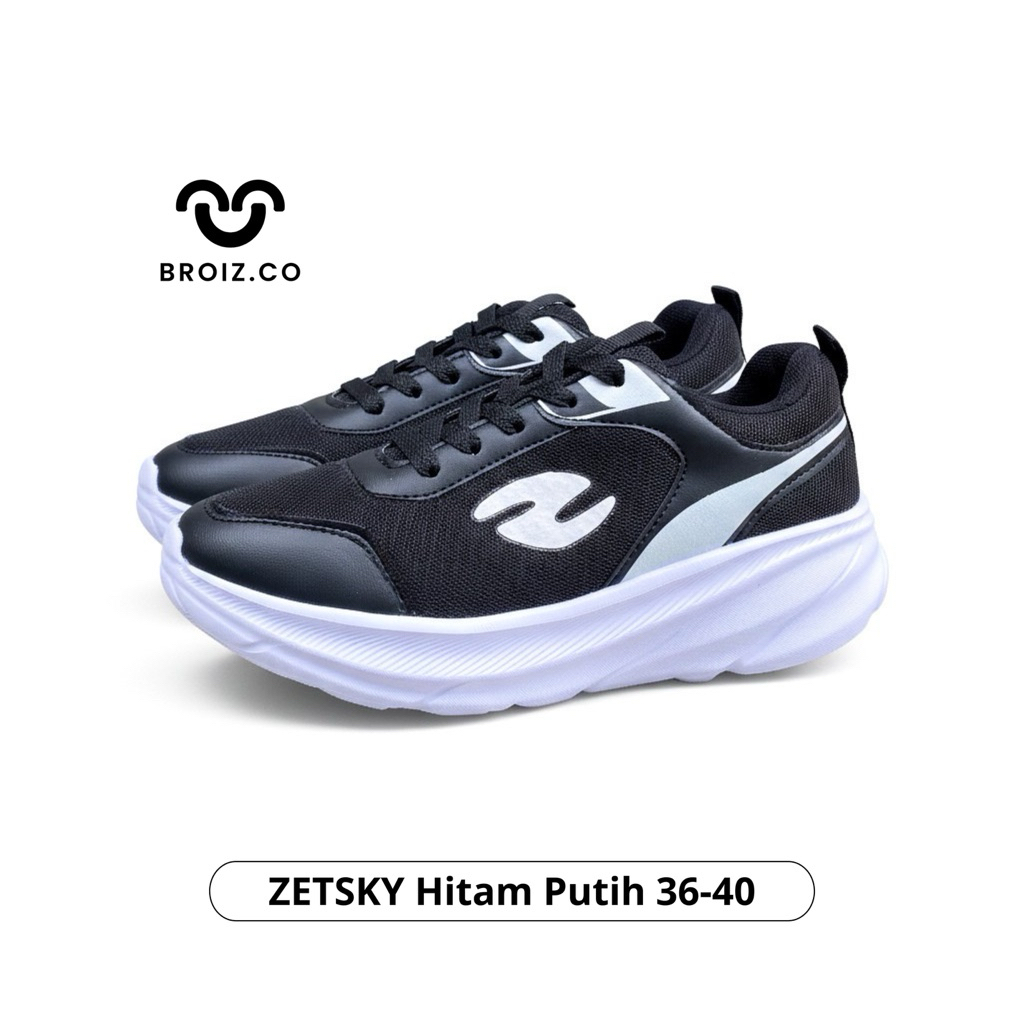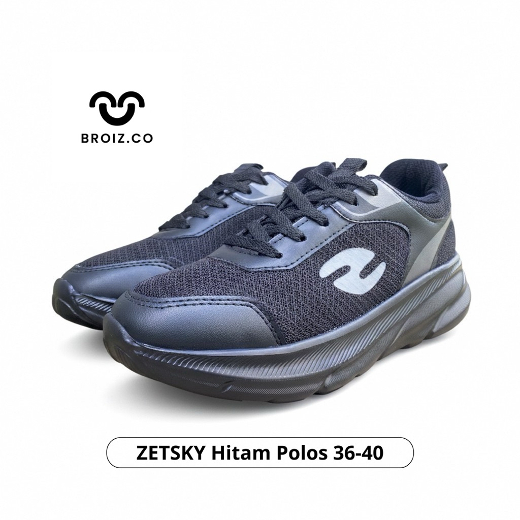 BROIZ.CO Zetsky Hitam Polos Sepatu Sneakers Sekolah Fashion Perempuan dan Laki-laki Trendy dan Stylish Size 36-40