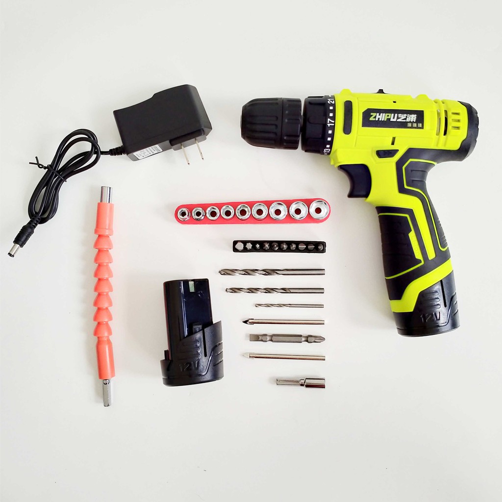 MESIN BOR BATERAI - CORDLESS DRILL ZHIPU - ZHIPU 12 V 2 BATERAI