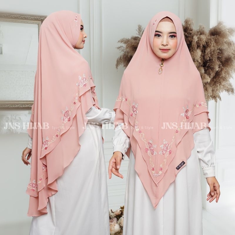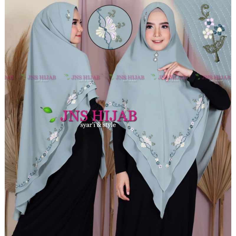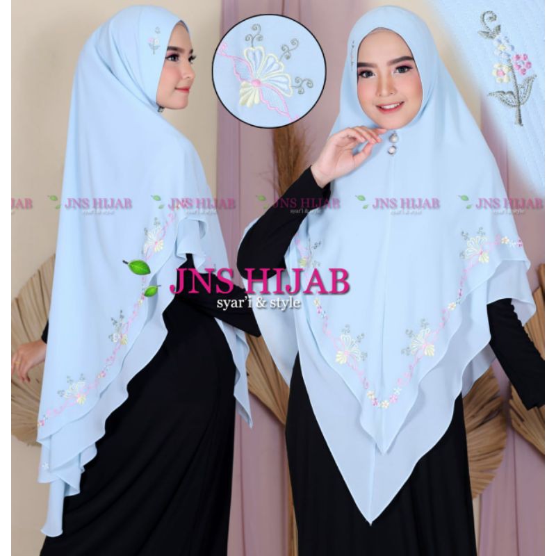 Khimar Syari Full Bordir Hijab Ceruty 2 Layer Kerudung Jumbo Syari Ceruty Babydoll premium Jns Hijab