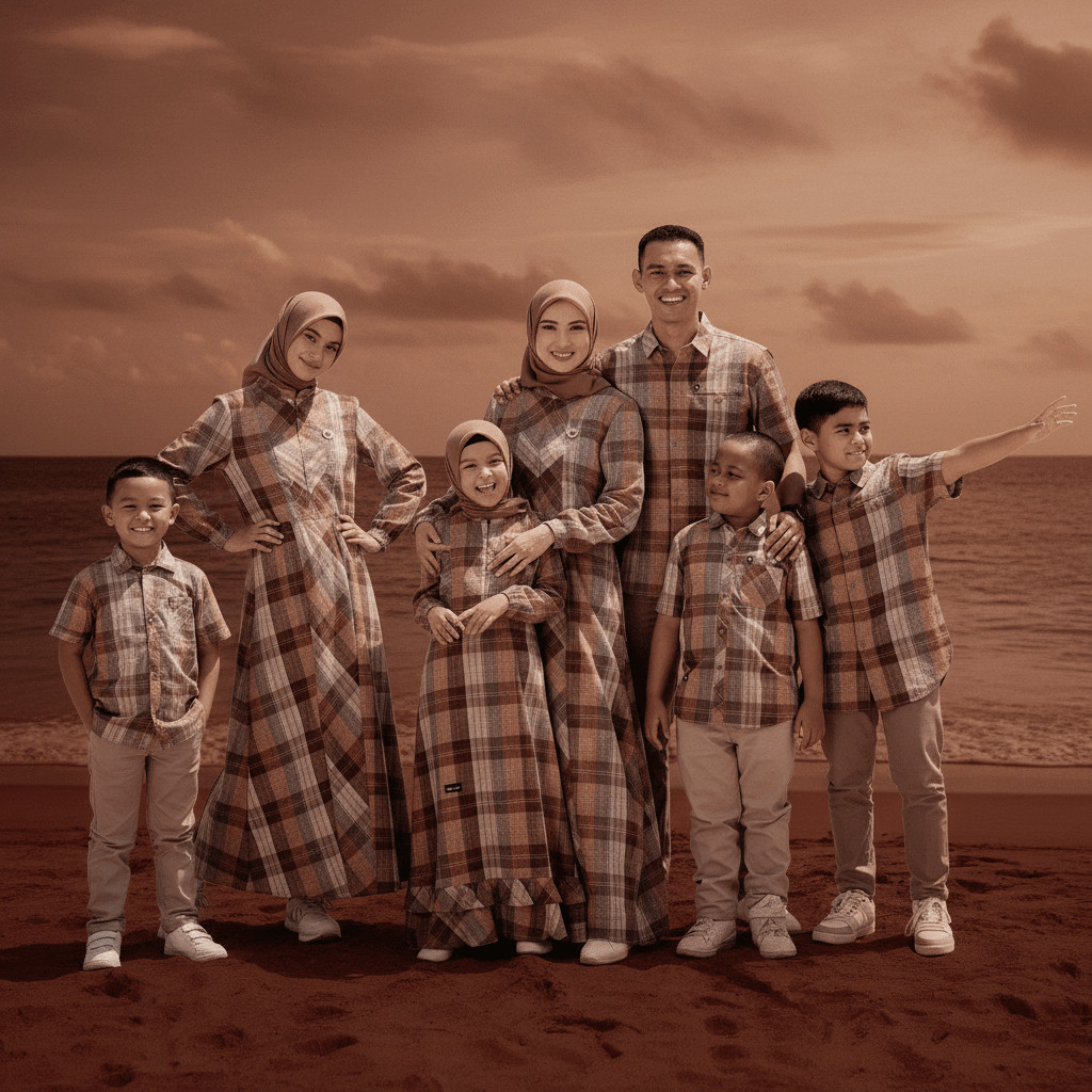 Sarimbit Lebaran 2026 Mahogany Couple Mewah Koko Elegan Gamis Keluarga Family Terbaru Premium Set