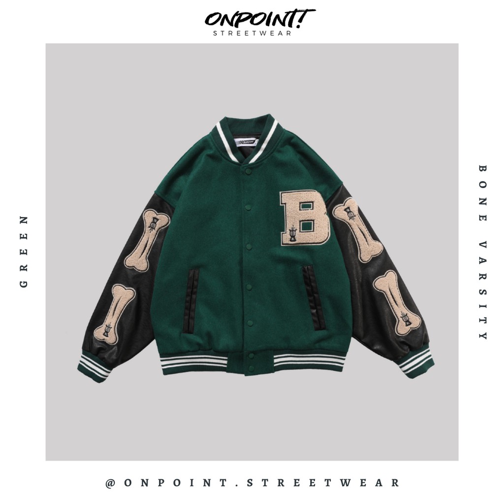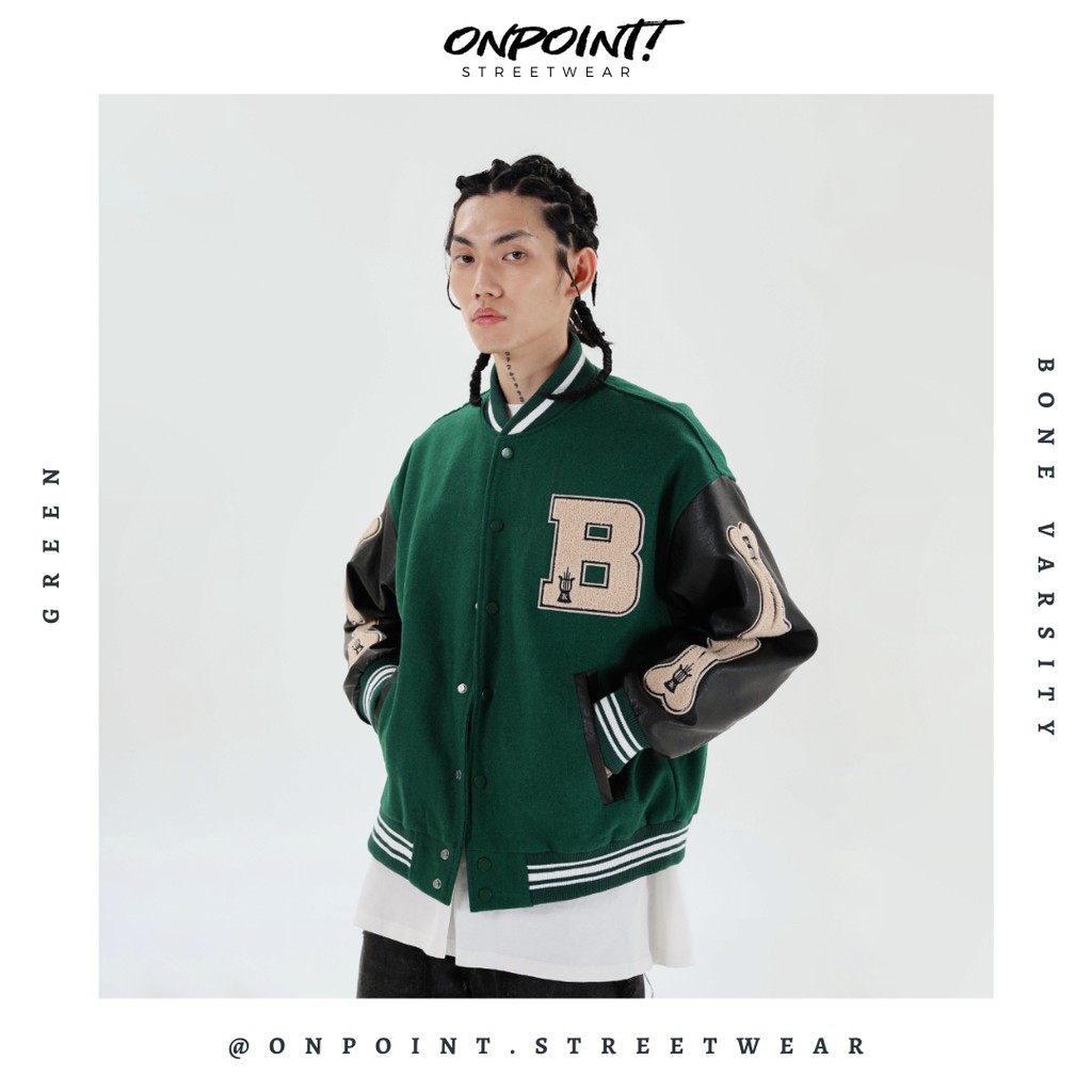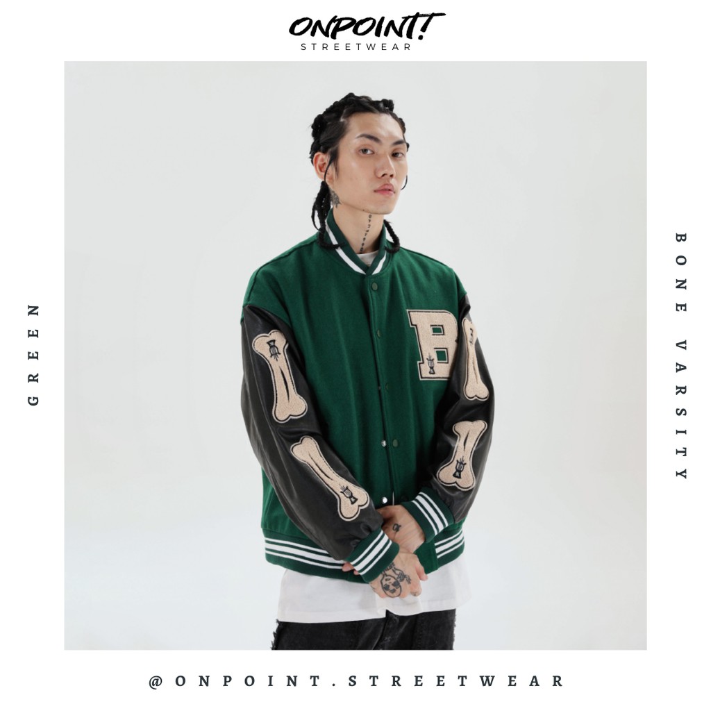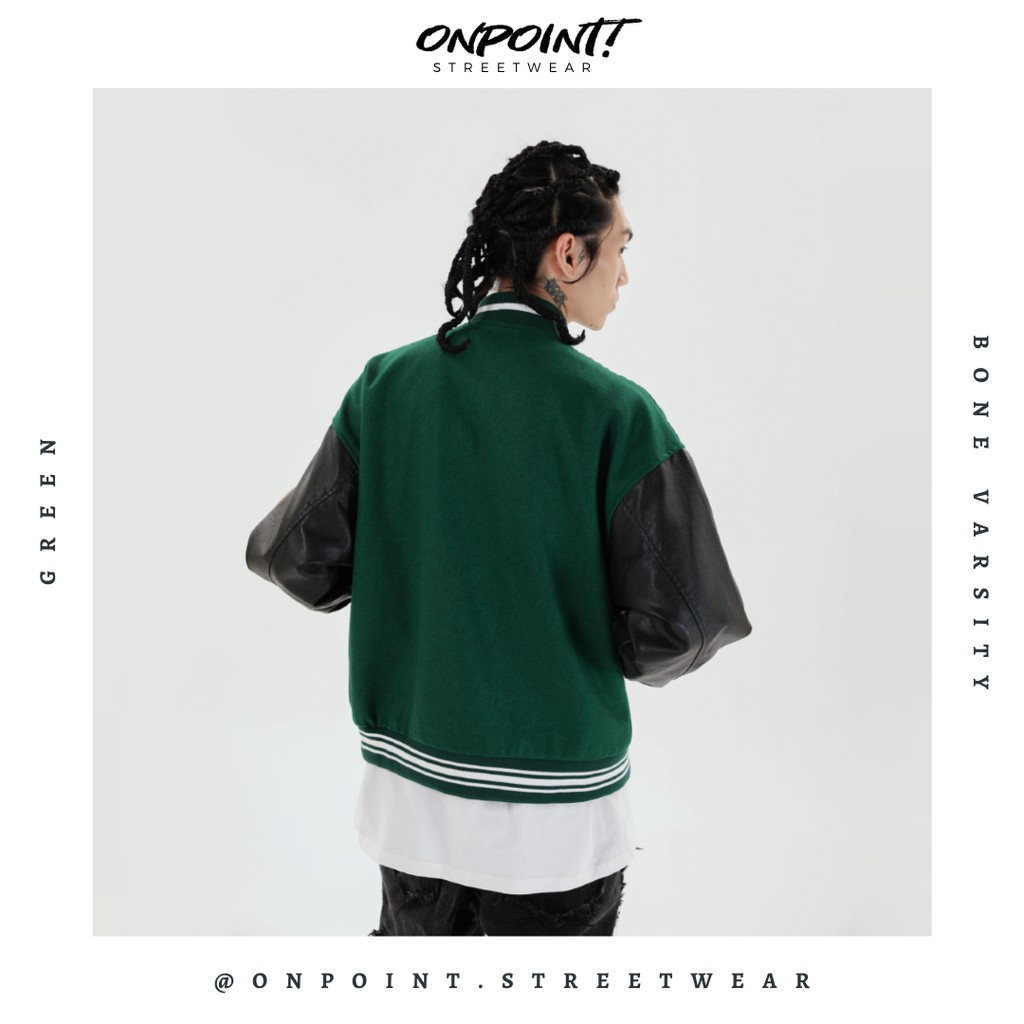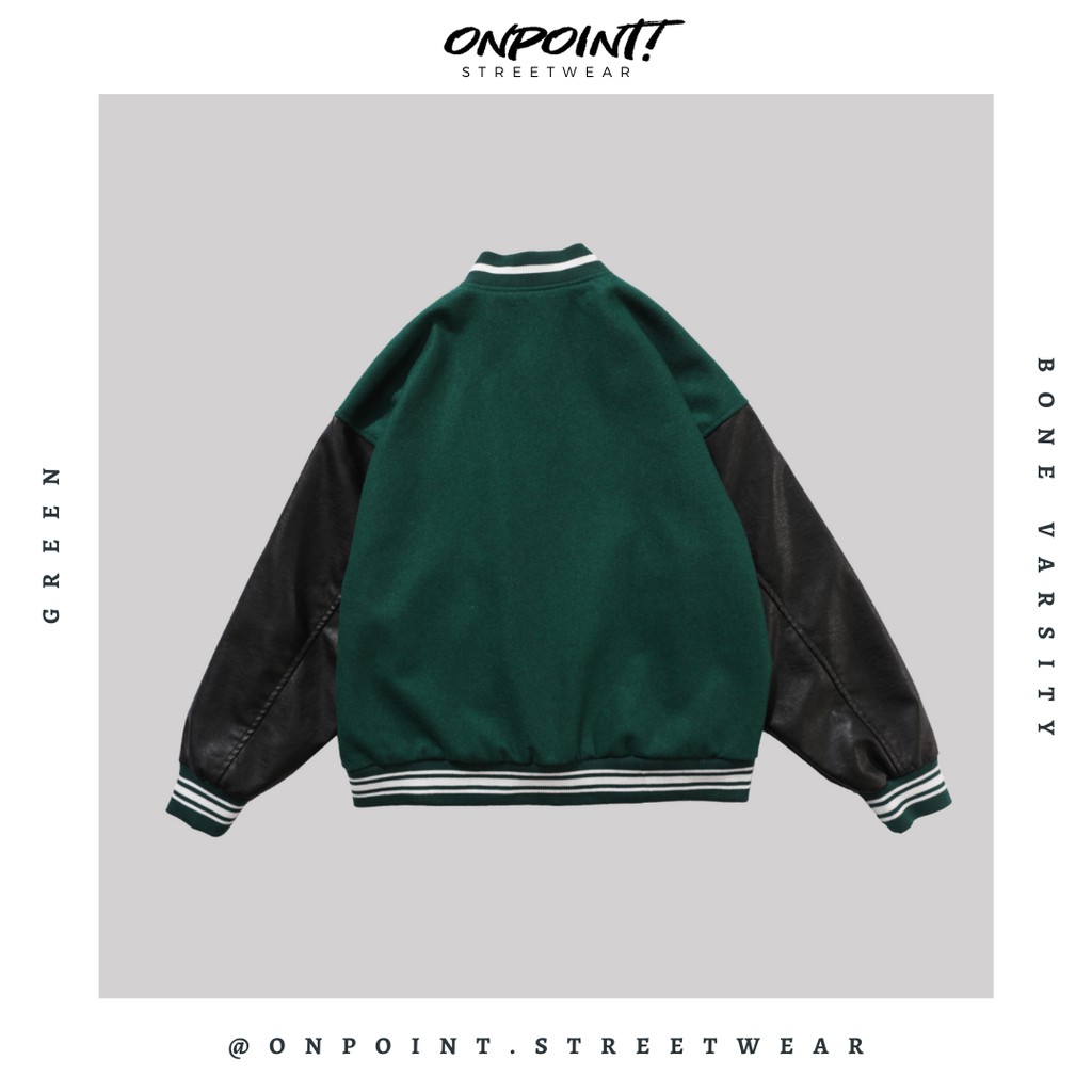 ‼️SALE‼️ Bone varsity (green) - jaket pria wanita gaya korea kualitas premium streetwear oversize