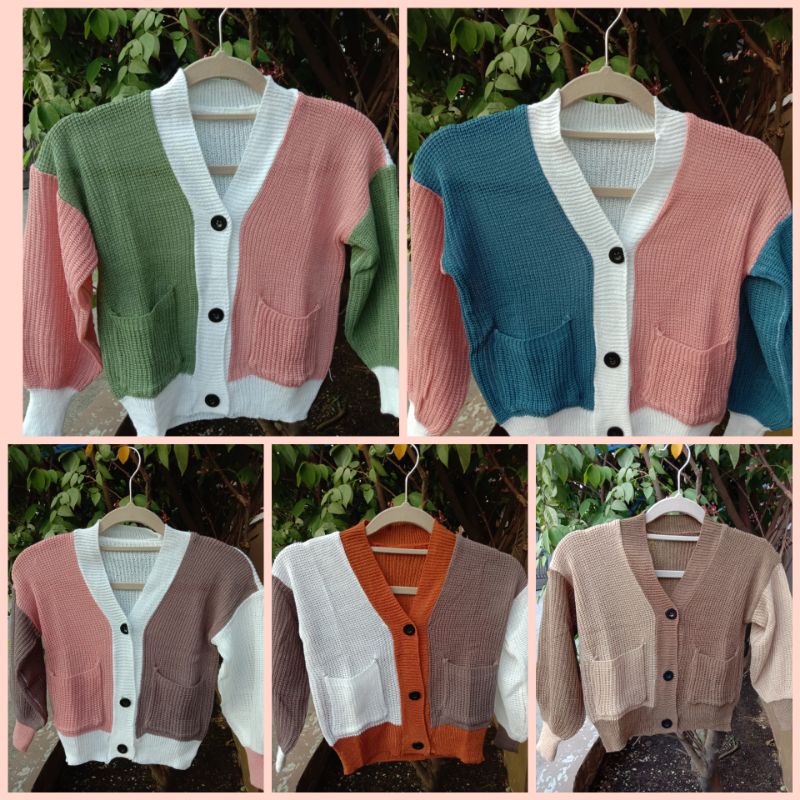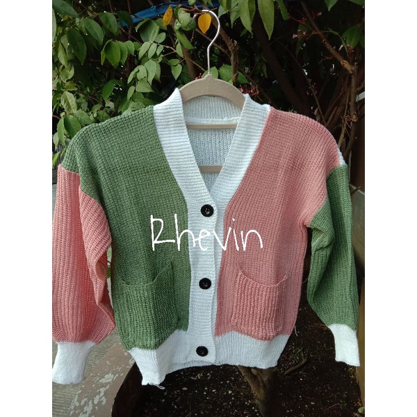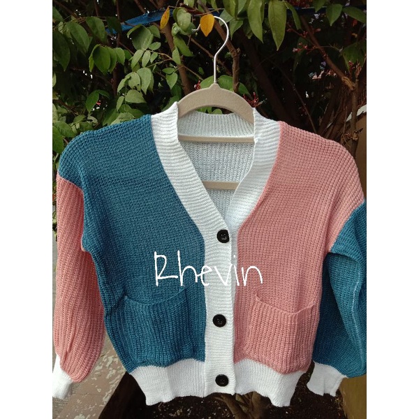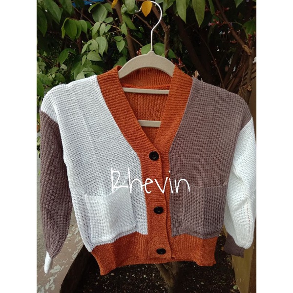 CARDIGAN RAJUT ANAK PEREMPUAN KOMBINASI 3 TONE 3-6 TAHUN