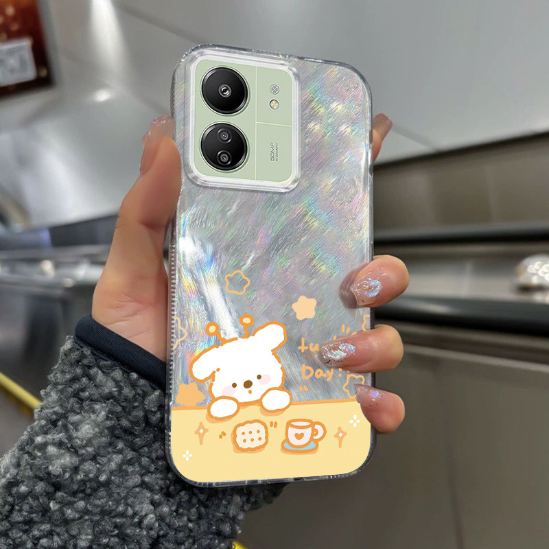 Casing Hp Untuk Xiaomi Redmi 13C 4G 13C 5G POCO C65 4G POCO M6 5G Case Casing pola anak anjing bahagia Kasing HP Cesing Silikon Softcase bulu transparan Kesing