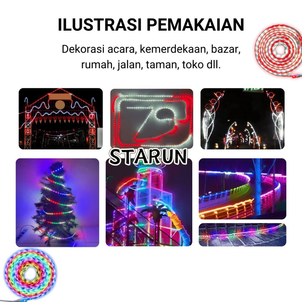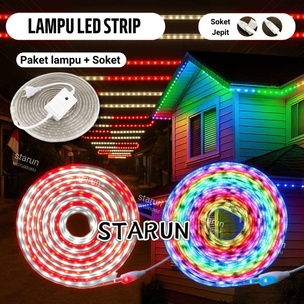 Lampu Led strip Outdoor Merah Putih Termasuk Adaptor 220V/Lampu strip Agustus lampu hias/Lampu warna warni Anti air Led 2835 3528 Strip 10Meter/17 Agustus