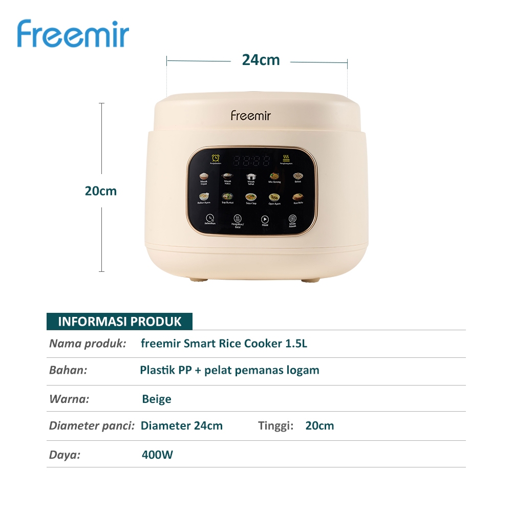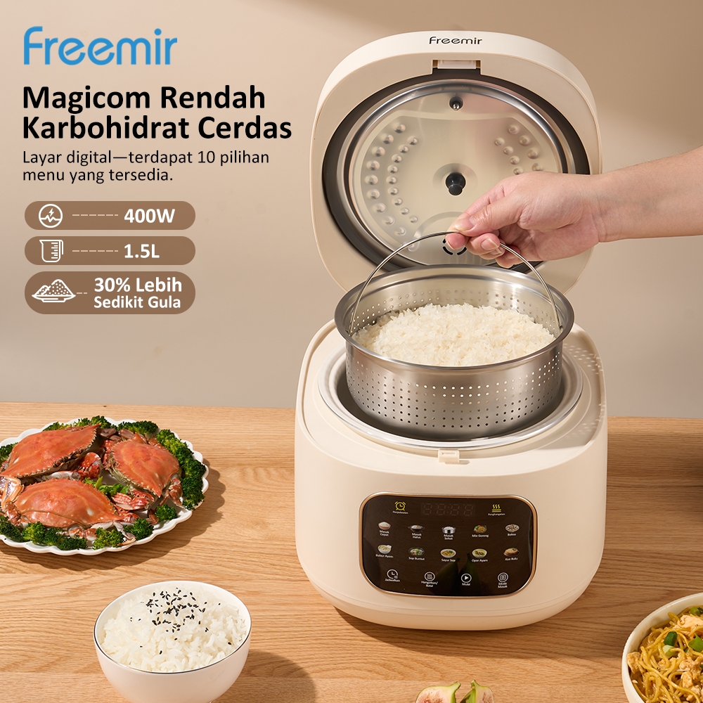[PREMIUM] freemir Rice Cooker Digital Rendah Gula 1.5L Lapisan Keramik Anti Lengket Multifungsi Diet