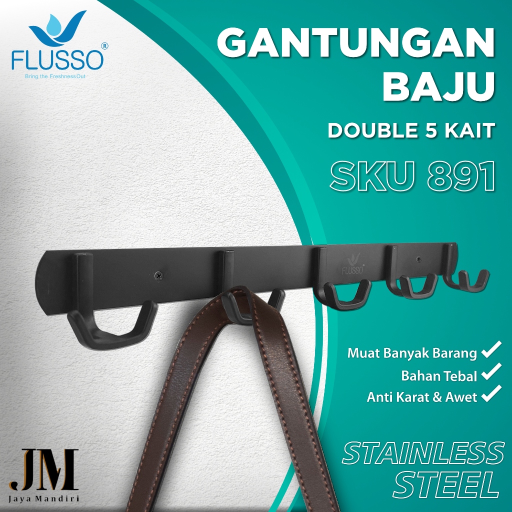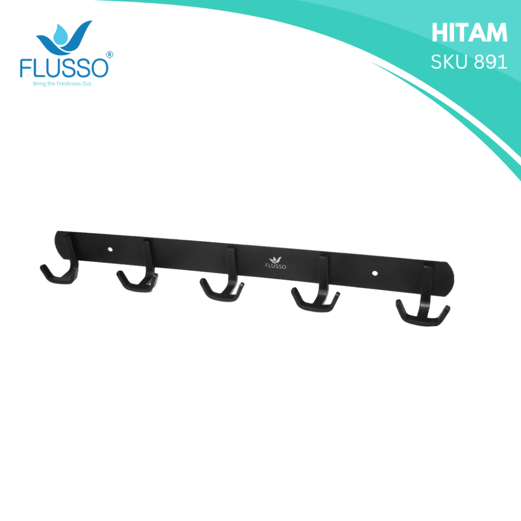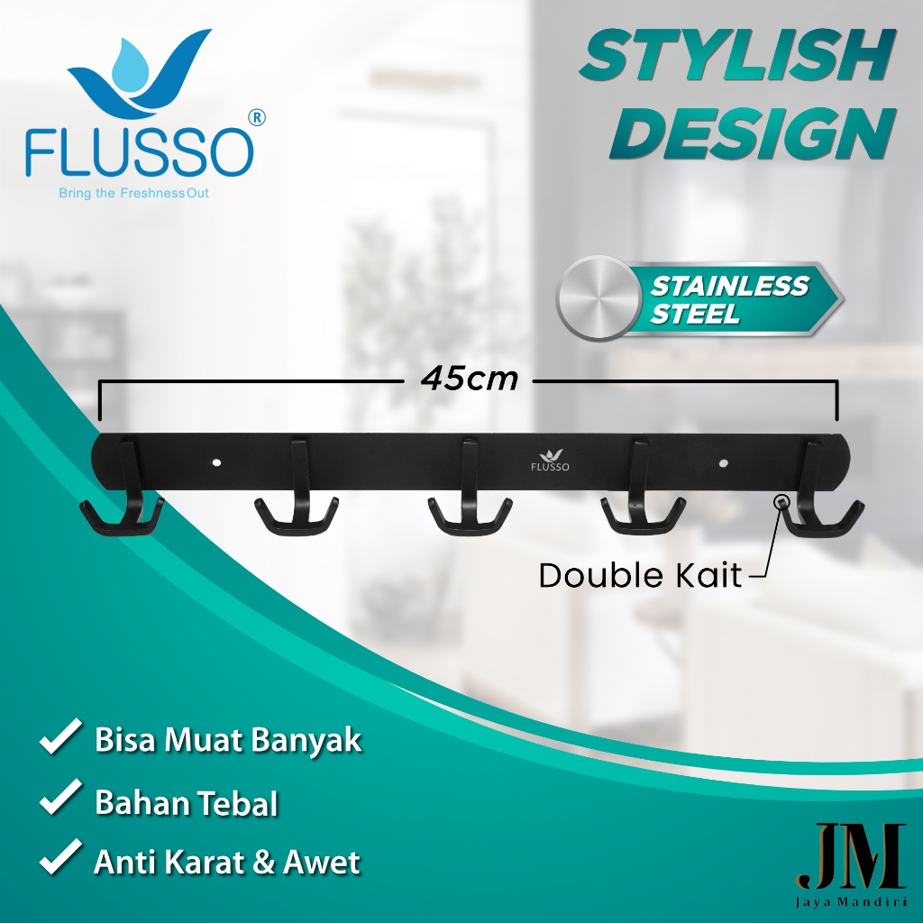 Flusso Gantungan Baju black/hitam Double 5 Kait Hanger Baju Handuk Serbaguna kamar mandi | 891