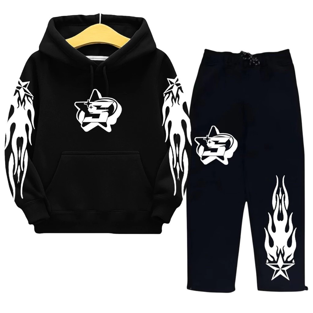 Setelan Hoodie boxy & Celana Baggy Skena Anak Laki-Laki dan Perempuan Usia 2-13 Tahun stelan celana dan hoody boxy Bahan Fleece Sablon DTF PREMIUM Unisex One Set FASHION